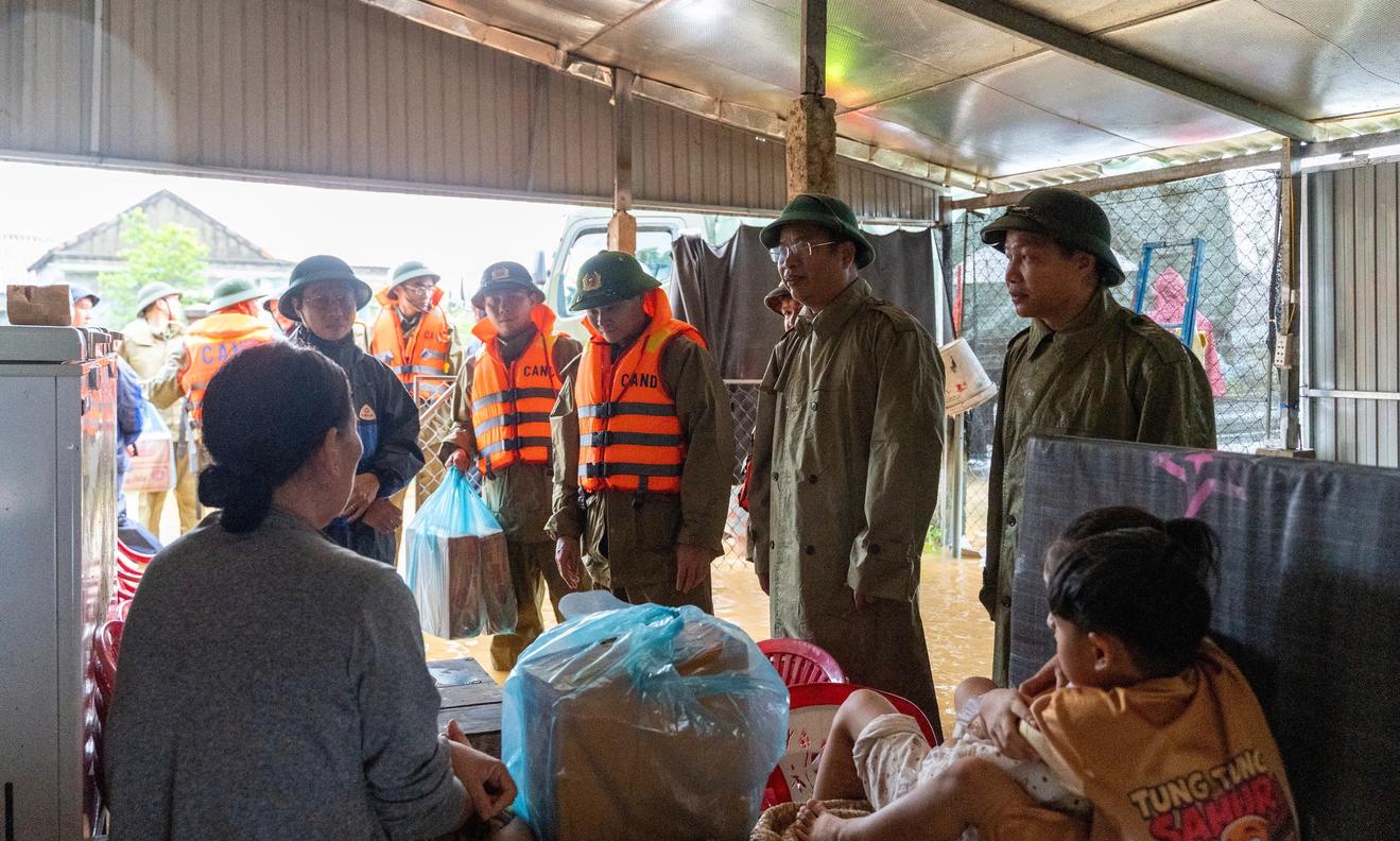 Phó Bí thư Thường trực Thành ủy Huế Phạm Đức Tiến thăm, tặng quà cho người dân và chỉ đạo công tác phòng chống mưa lũ tại phường Phú Bài. Ảnh: CATP Huế