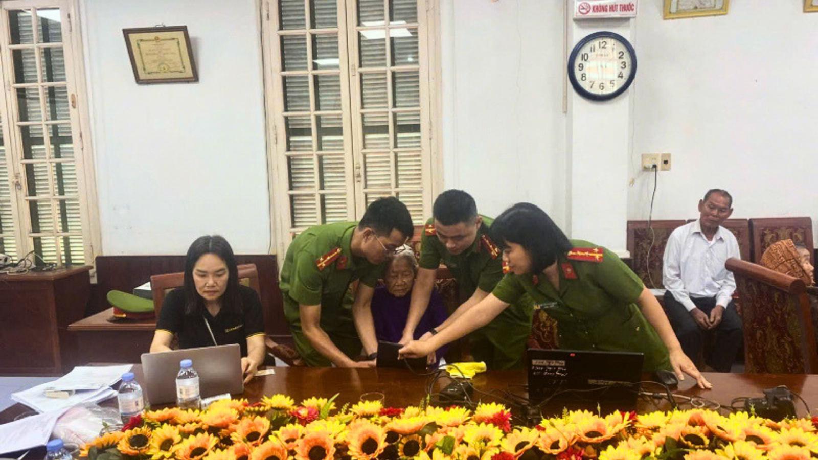 Công an TP Huế thu nhận mẫu ADN từ thân nhân liệt sĩ là Mẹ Việt Nam Anh hùng. Ảnh: CTV