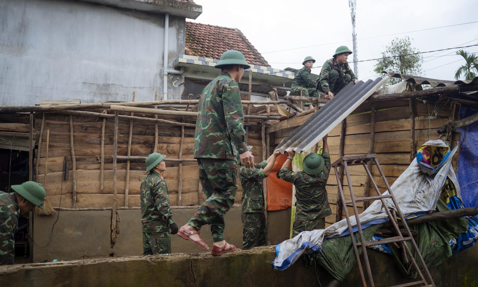 Lực lượng quân đội cùng tham gia "Chiến dịch Quang Trung" thần tốc giúp Nhân dân xây dựng, sửa chữa nhà bị thiệt hại sau đợt mưa lũ lịch sử xảy ra trên địa bàn TP Huế. Ảnh: CTV
