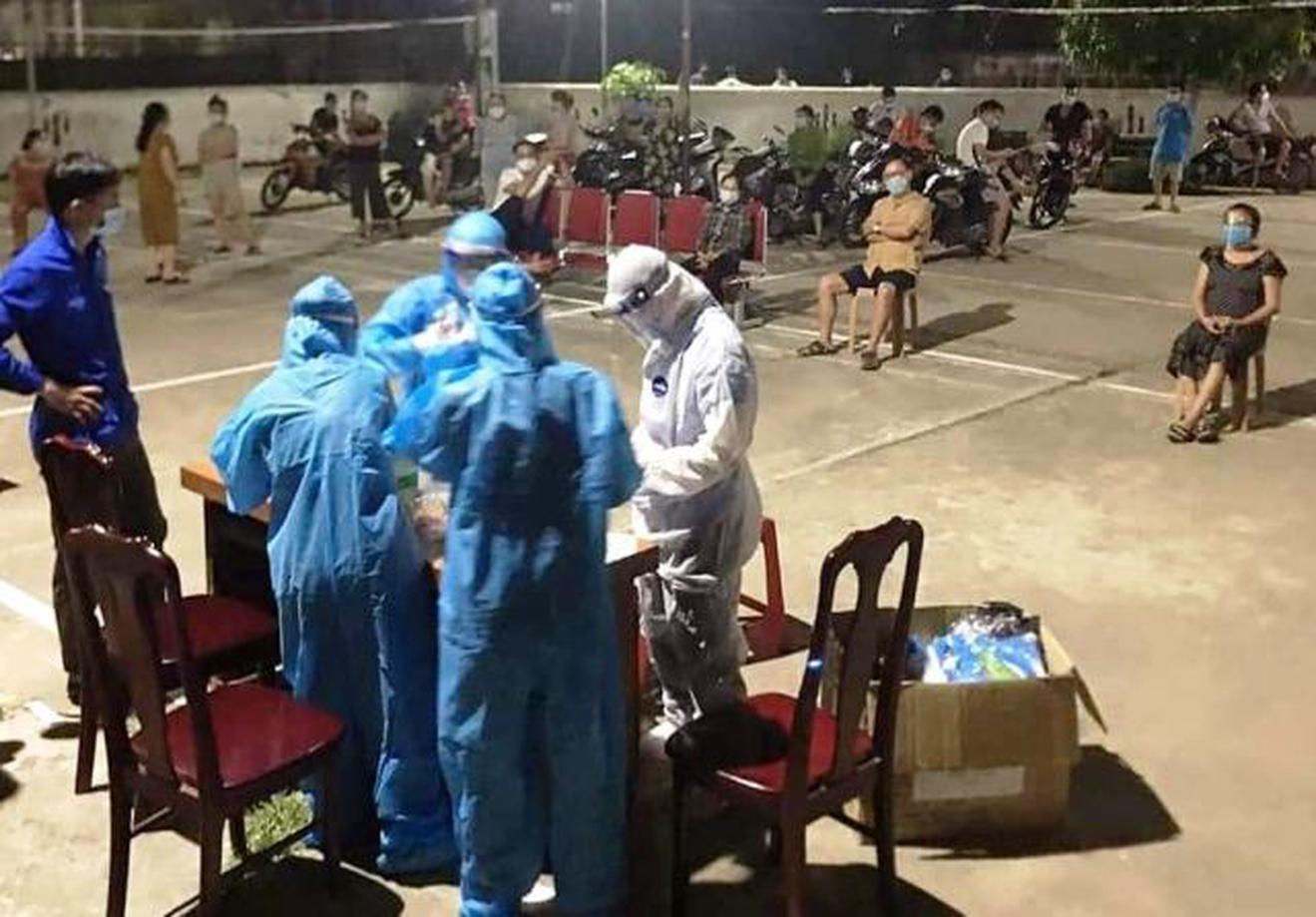 Lấy mẫu test nhanh phát hiện Covid-19 vào tối 19/6 tại TP Vinh. Ảnh: Hoàng Thông