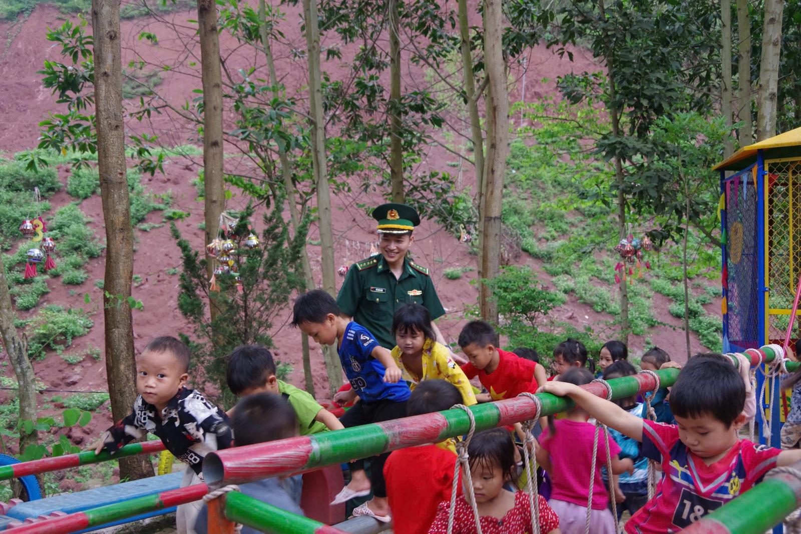 Đại úy Đỗ Xuân Điềm đồng hành cùng trẻ em vùng biên.