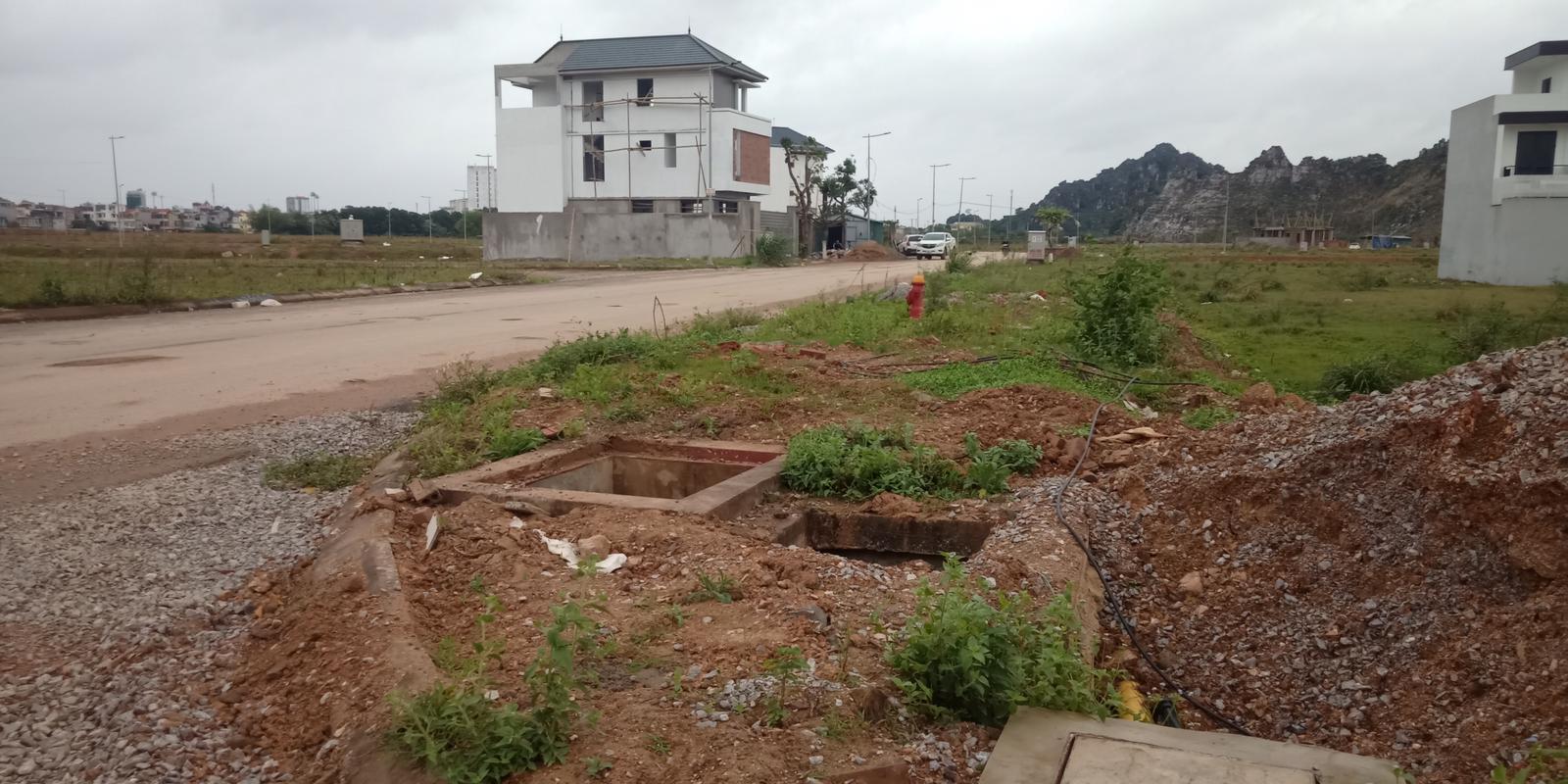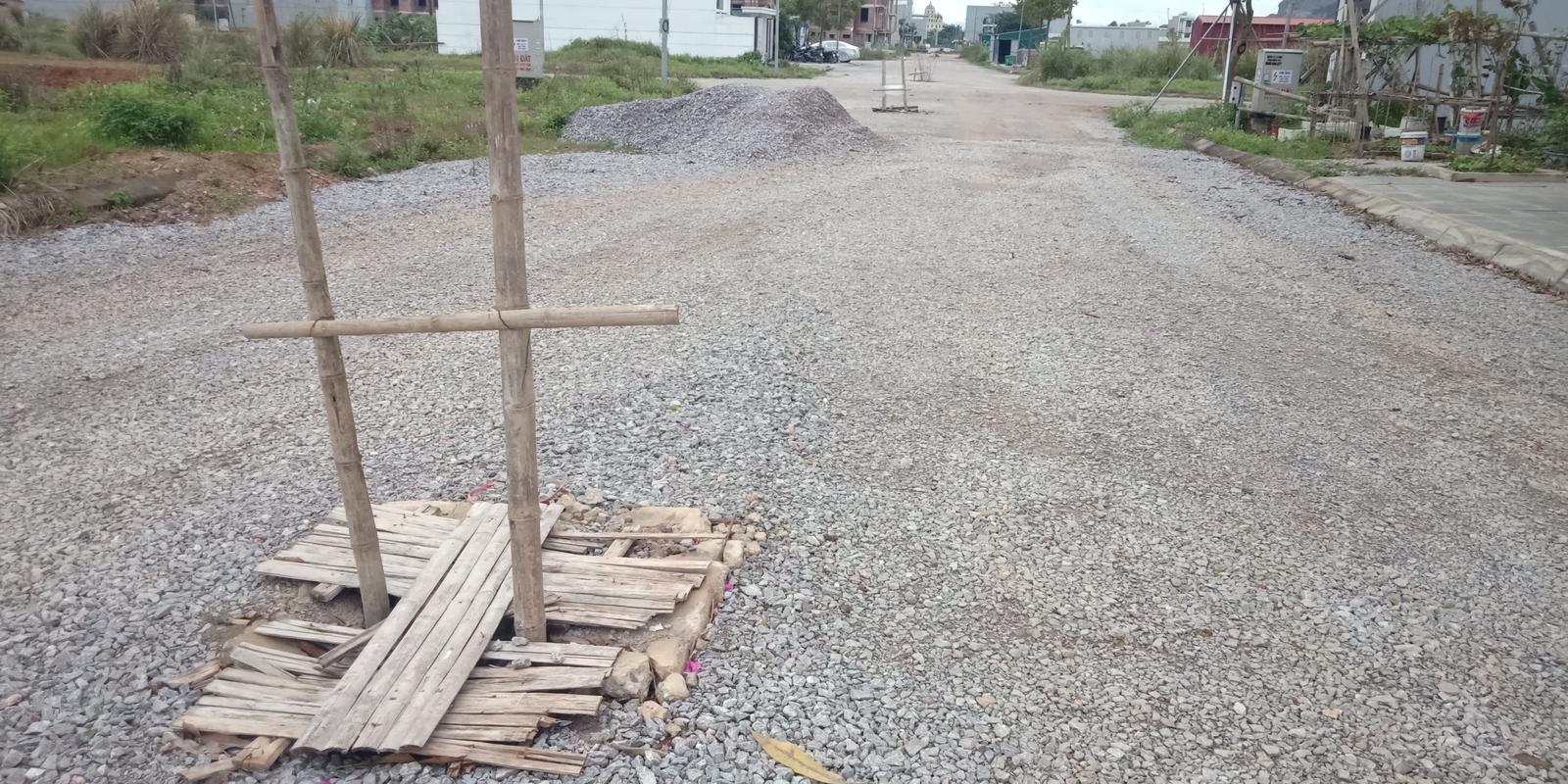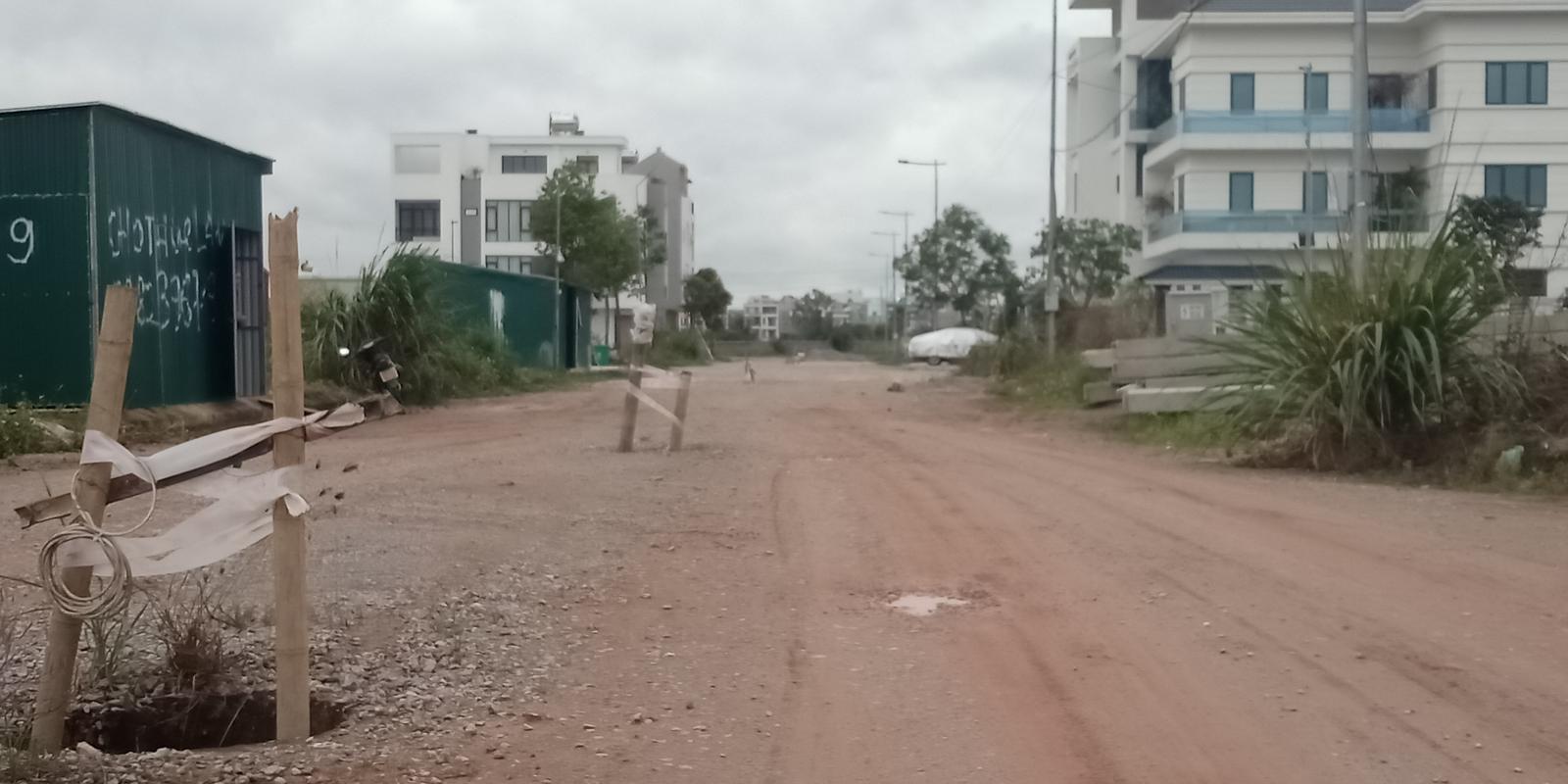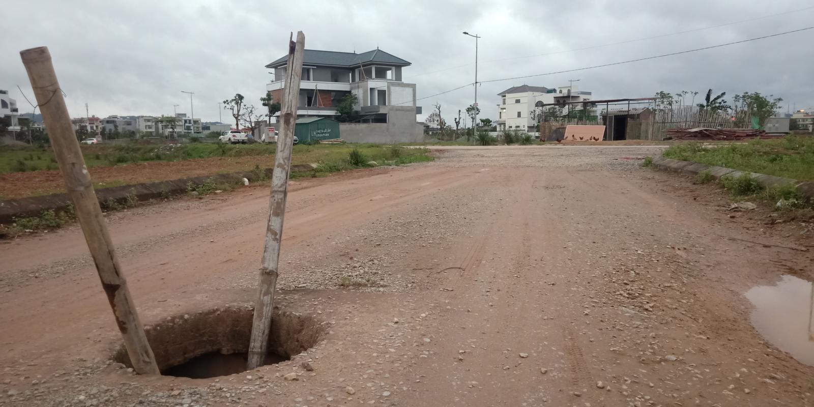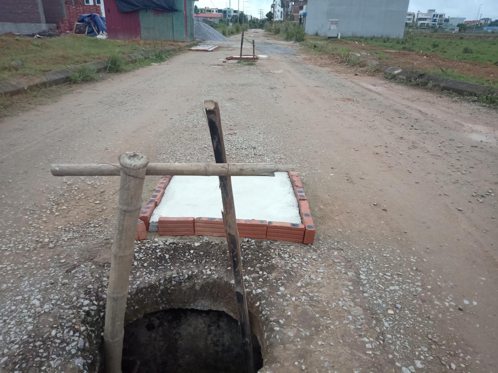 Mặc dù đã có một số hộ dân vào xây dựng nhà ở, thế nhưng đường giao thông vẫn chưa được trải thảm nhựa, hố ga vẫn phải đậy nắp bằng luồng. Ảnh: Văn Thanh