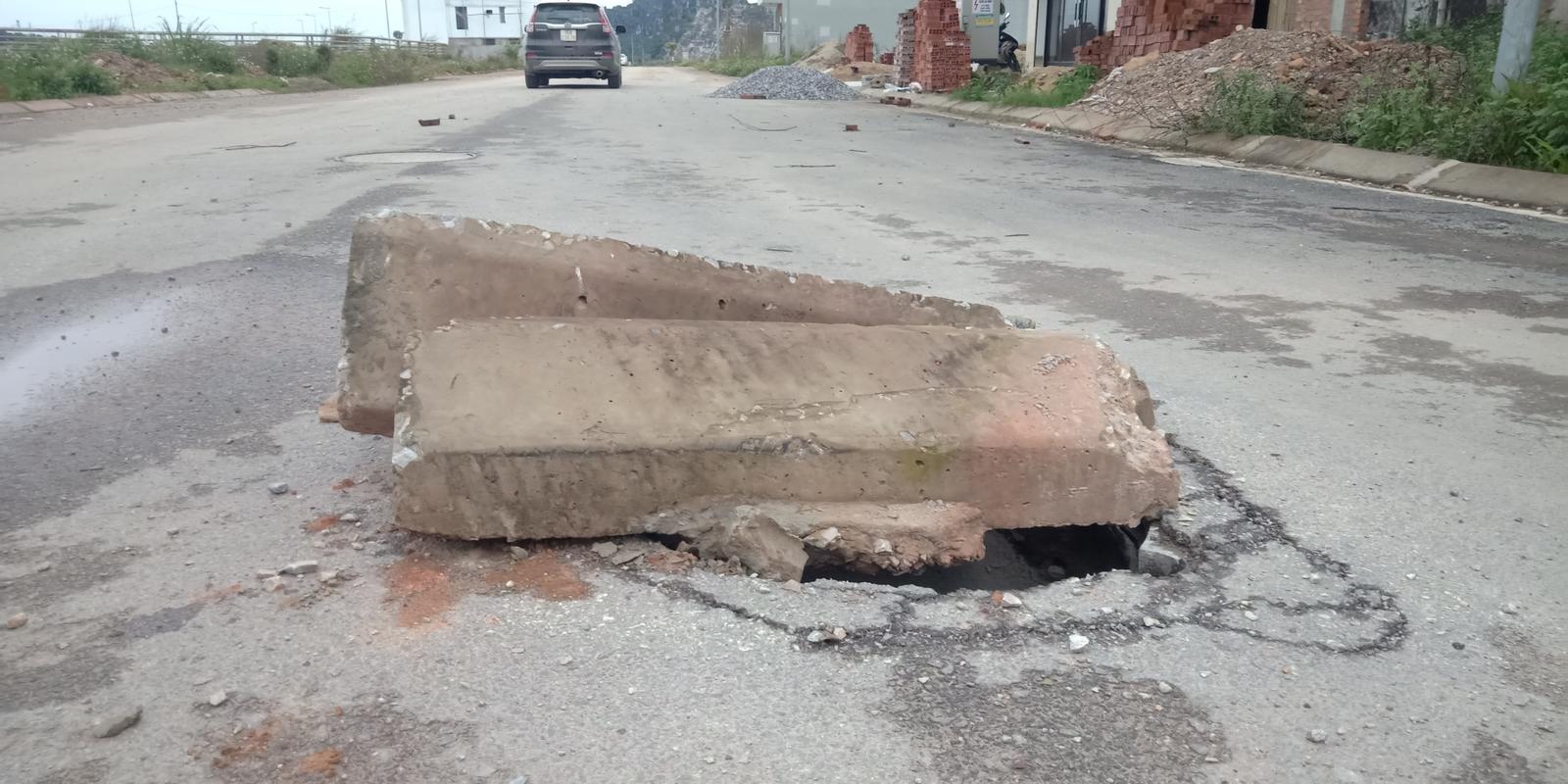 Có những hố ga được đậy bằng những cục bê tông to tướng. Ảnh:Văn Thanh