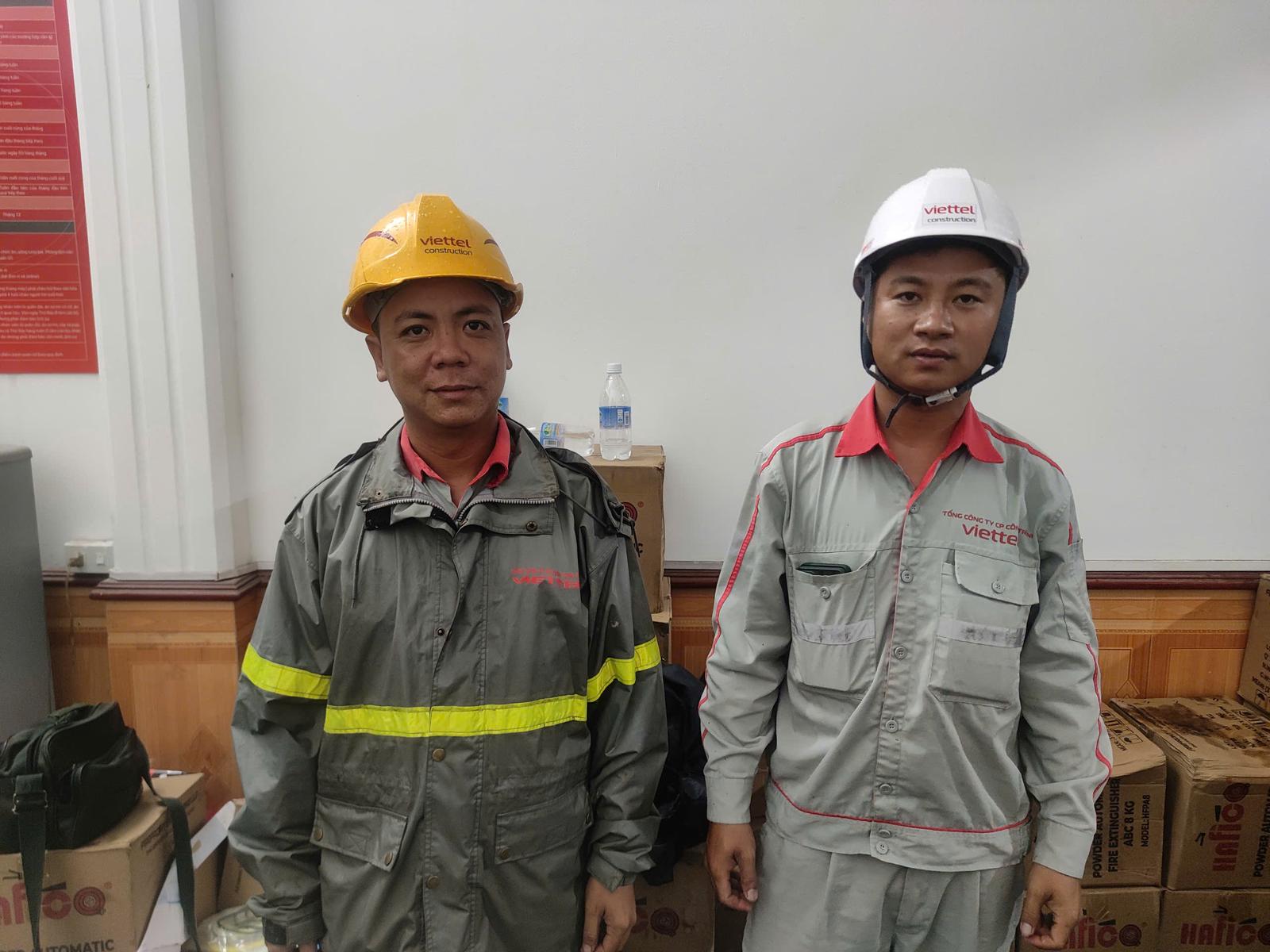 Anh Hoàng Đức Hiếu (trái) từ Quảng Bình ra Quảng Ninh để khắc phục sự cố sau bão