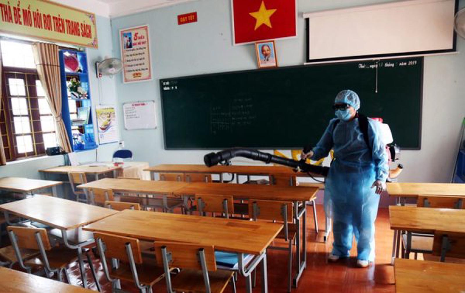 Phun thuốc khử trùng tại các trường học. Ảnh: TQ