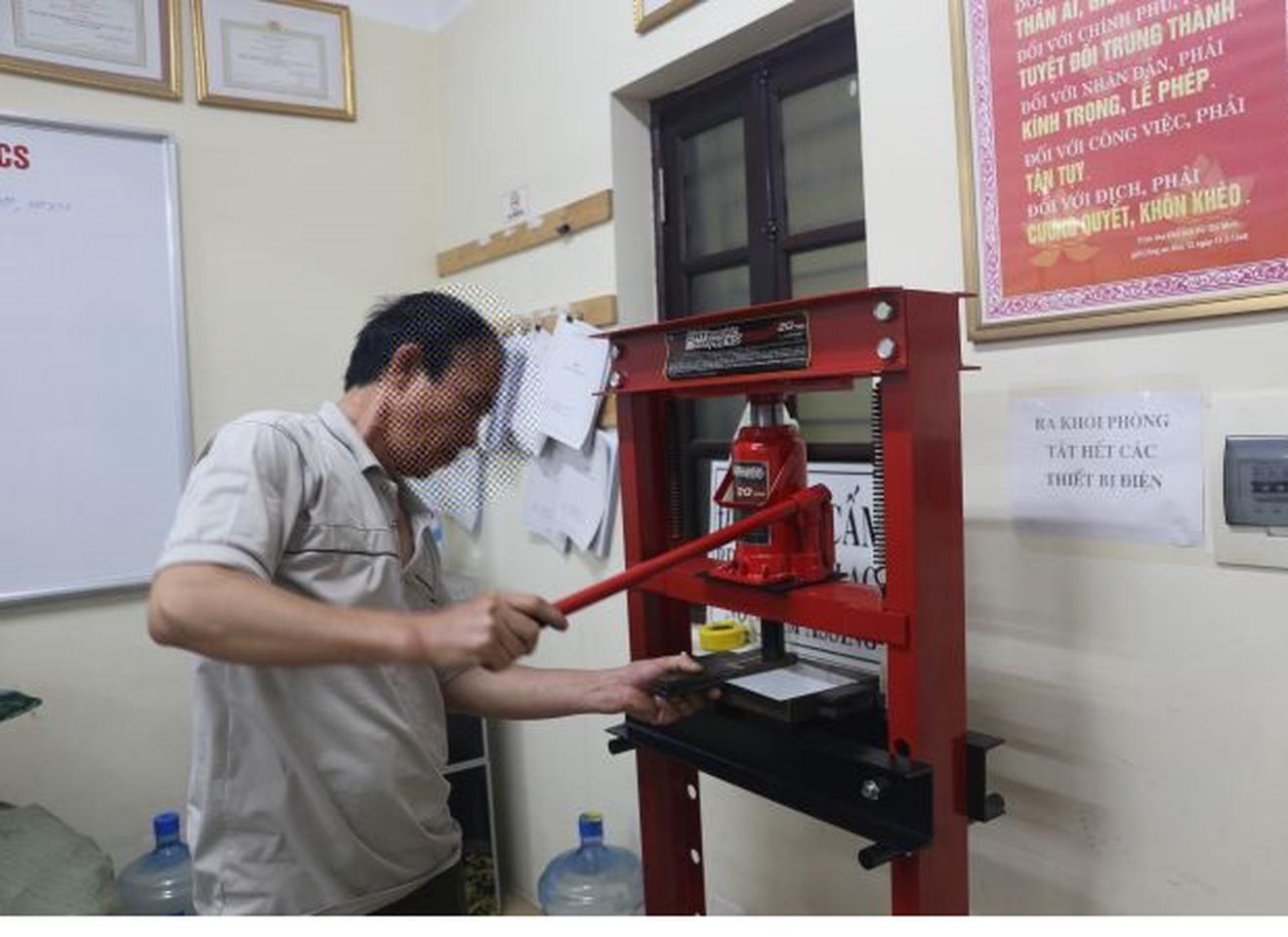 Chủ cửa hàng là Đào Gia T. (SN 1964; trú tại quận Đống Đa, Hà Nội) khai nhận đã mua máy ép thủy lực để sản xuất biển kiểm soát xe giả và nhiều dụng cụ khác của một người lạ mặt với giá 7 triệu đồng sau đó tự sản xuất biển số ô tô, xe máy giả.