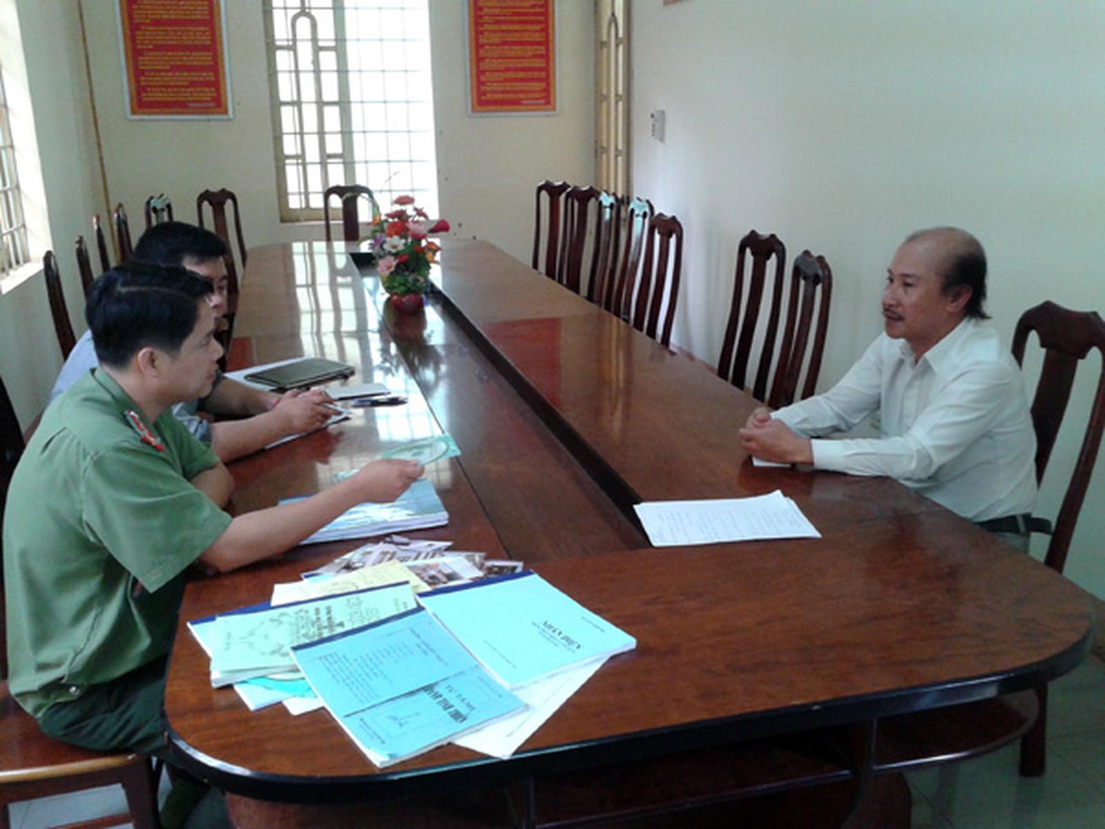 Ông Trần Thế Quốc (bên phải) tại Công an TP Buôn Ma Thuột. Ảnh: Quỳnh Anh
