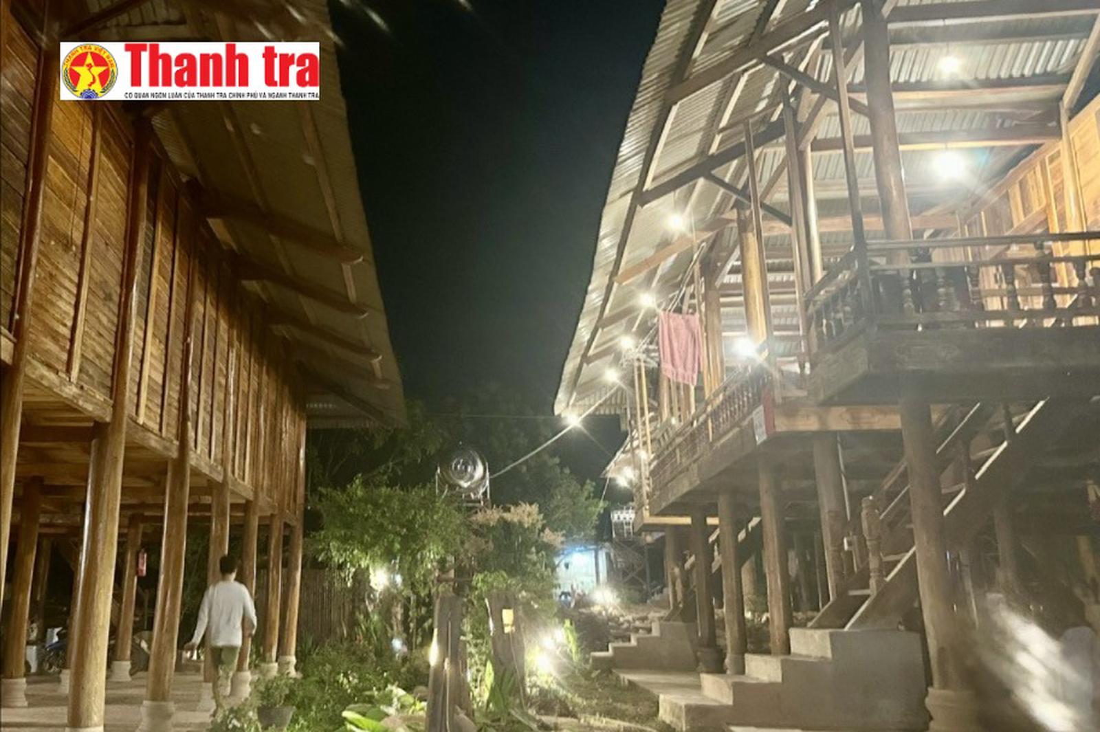 Không gian homestay cộng đồng ở bản Nà Sự rực sáng về đêm, thu hút ngày càng nhiều du khách đến trải nghiệm văn hóa Thái trắng. Ảnh: Thi Thi