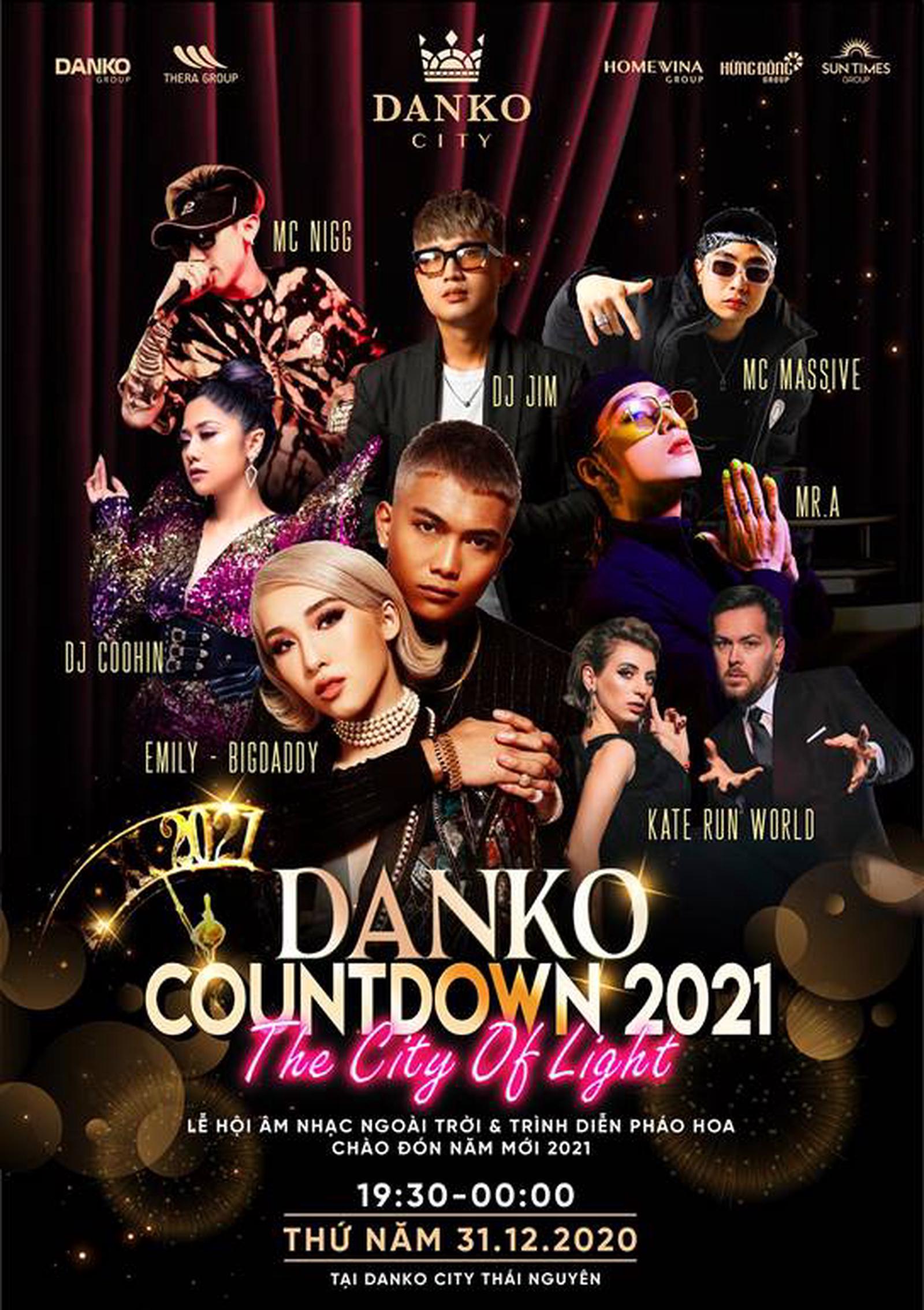 Điều đặc biệt, góp mặt tại sự kiện Danko Countdown 2021 là các nghệ sĩ nổi tiếng như DJ Coohin, Jim Nguyễn Tuấn Anh, MC Lê Hiếu, Emily Nguyễn Hương Ly, Big Daddy Trần Tất Vũ, MR A Phạm Tuấn Anh…Cùng với những bài hát ấn tượng đang đứng đầu bảng xếp hạng thịnh hành của YouTube như "Mượn rượu tỏ tình" hay nồng nàn trong giai điệu “Tình yêu màu nắng”, lãng mạn với khúc tình ca “Tell Me Why”… "Cháy hết mình" trong niềm vui chờ đón giao thừa cùng những vũ điệu trẻ trung, cuồng nhiệt và âm nhạc EDM thời thượng sẽ khiến Thái Nguyên như “thành phố không ngủ”.