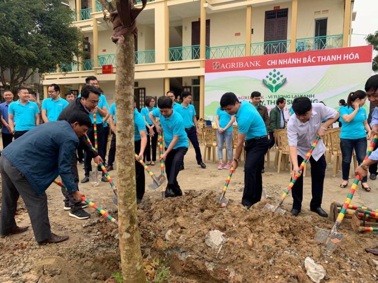 Ngay từ những ngày đầu triển khai, chương trình đã dành được sự quan tâm của toàn hệ thống. Là một trong những chi nhánh khởi đầu cho chương trình, Agribank Chi nhánh Bắc Thanh Hóa phối hợp cùng Đảng ủy, UBND thị trấn Vĩnh Lộc tổ chức trao tặng 10.000 cây xanh và cùng Đoàn Thanh niên, nhân dân địa phương trực tiếp lên đồi trồng cây.