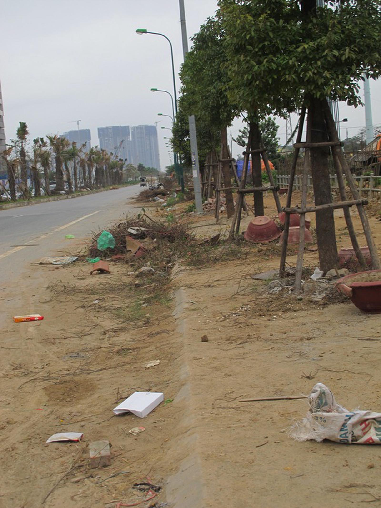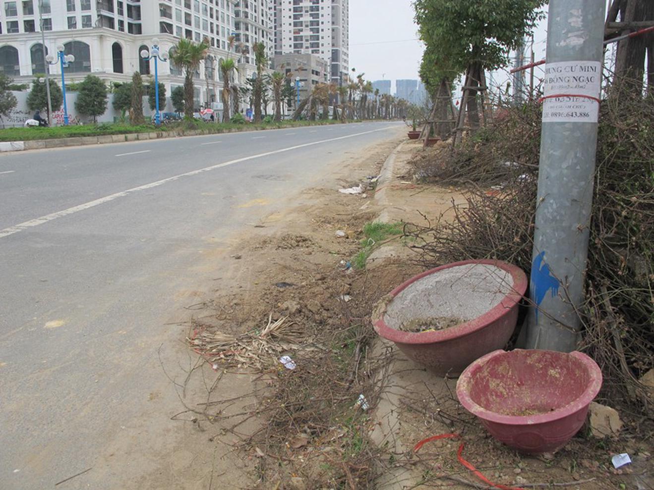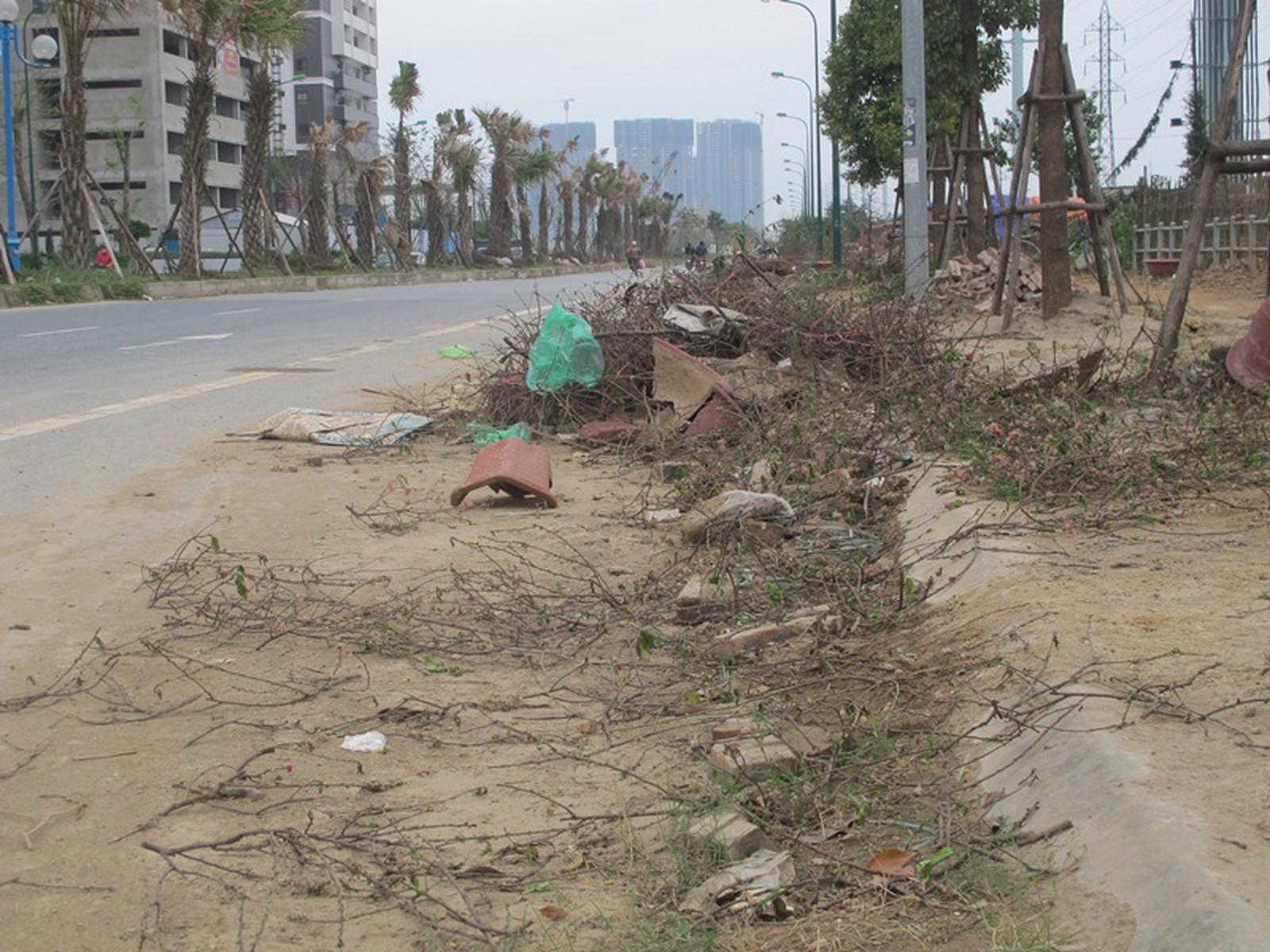 Sau Tết chậu cảnh, đất đá vương vãi khắp một đoạn đường.