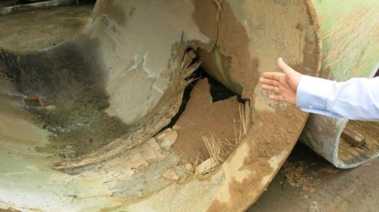 Sau nhiều lần bục vỡ, tuyến ống dẫn nước sông Đà đã như chiếc "áo vá". Ảnh: CTV