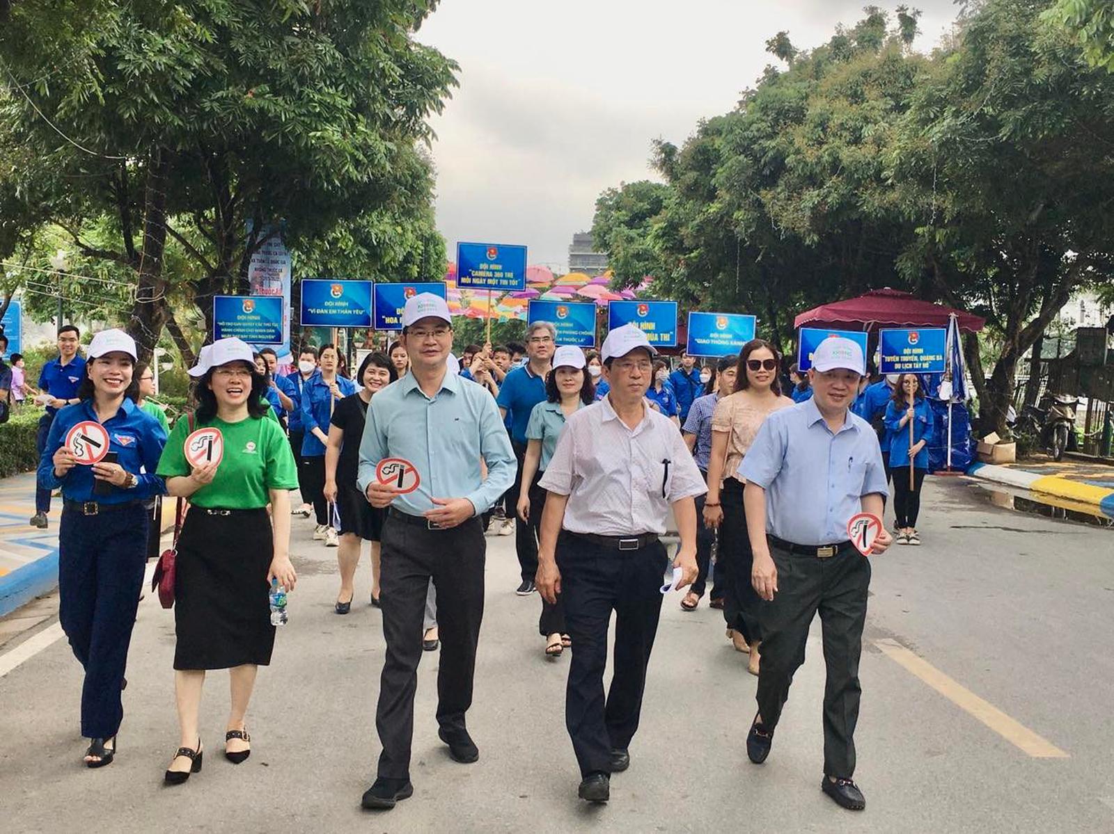 Các đại biểu tại tuyến phố đi bộ Trịnh Công Sơn không khói thuốc. Ảnh: PV