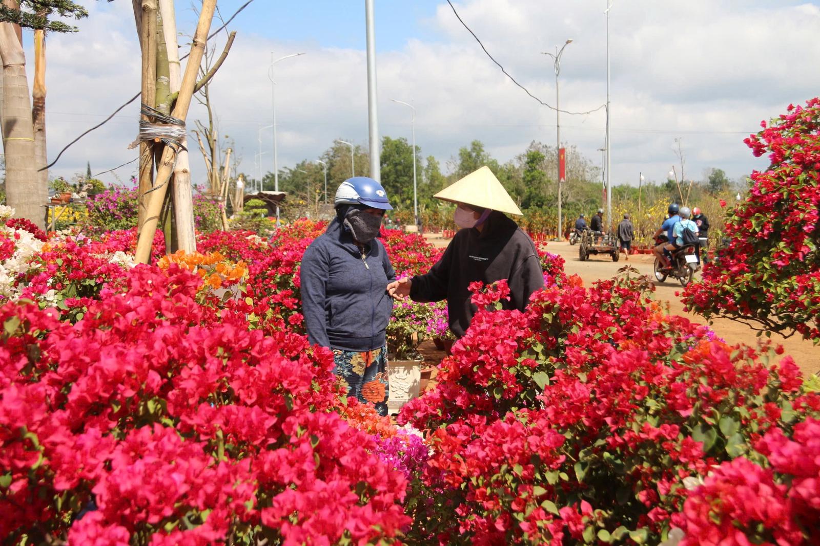 Chúng tôi gặp ông Trương Văn Ngự (trú xã Ea Hiu, huyện Krông Pắc) khi đang tìm mua cây cảnh bên đường. Ông cho biết, bánh chưng, bánh tét đã gói xong. Kẹo dưa mứt bánh…, gia đình đã sắm đủ đầy từ sớm. Nhà ông chỉ còn thiếu chậu hoa nữa là trọn vị Tết.