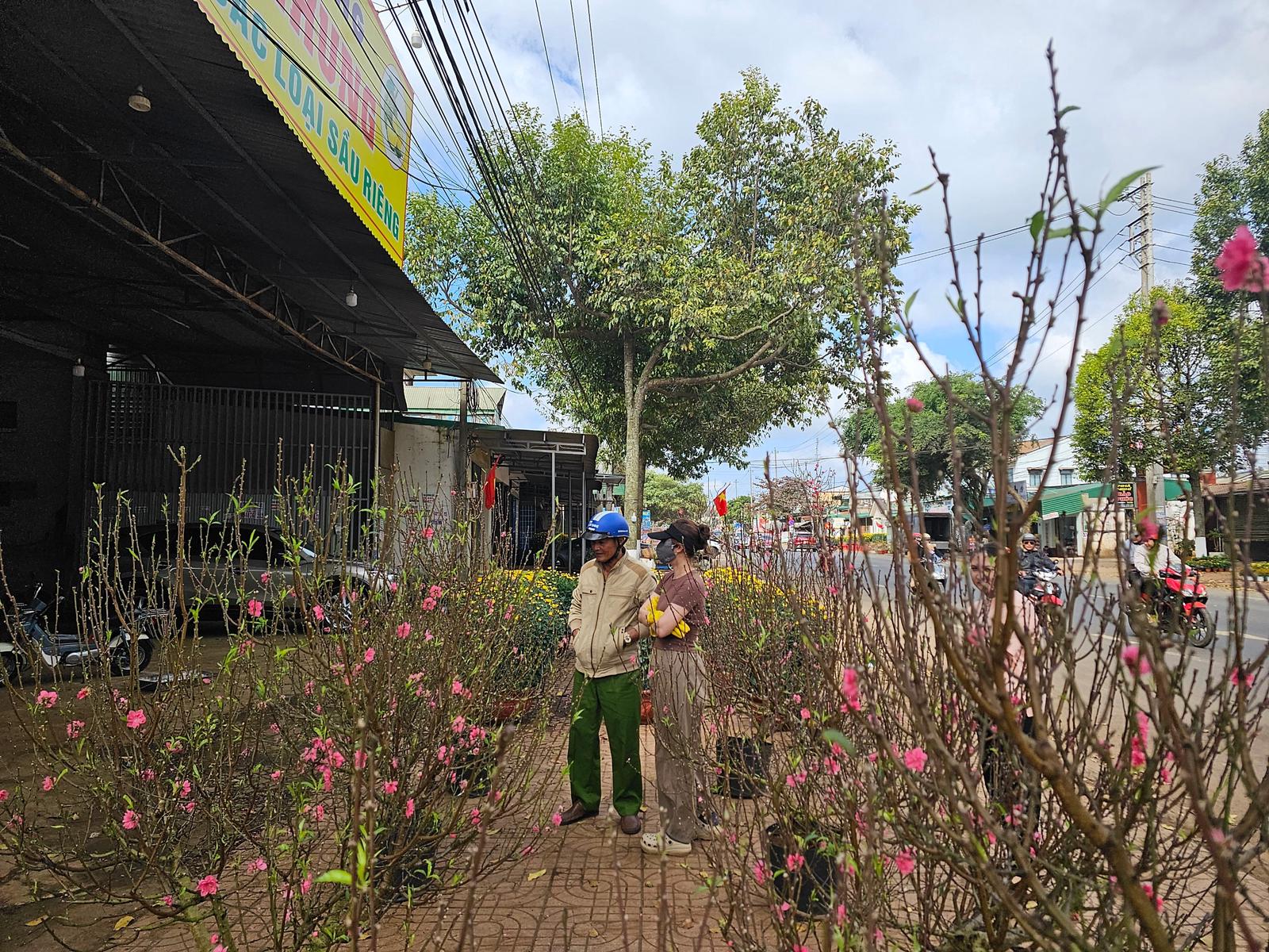Người dân huyện Krông Pắc chọn hoa đào để đón Tết. Ảnh: NG