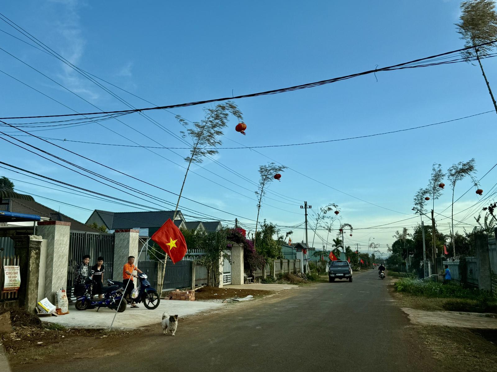 Ghé thăm huyện Krông Pắc – nơi được ví là thủ phủ sầu riêng của tỉnh Đắk Lắk một ngày cuối năm. Trên các cung đường từ trung tâm huyện cho đến tận buôn làng đã rợp bóng cờ đỏ sao vàng tung bay phấp phới.