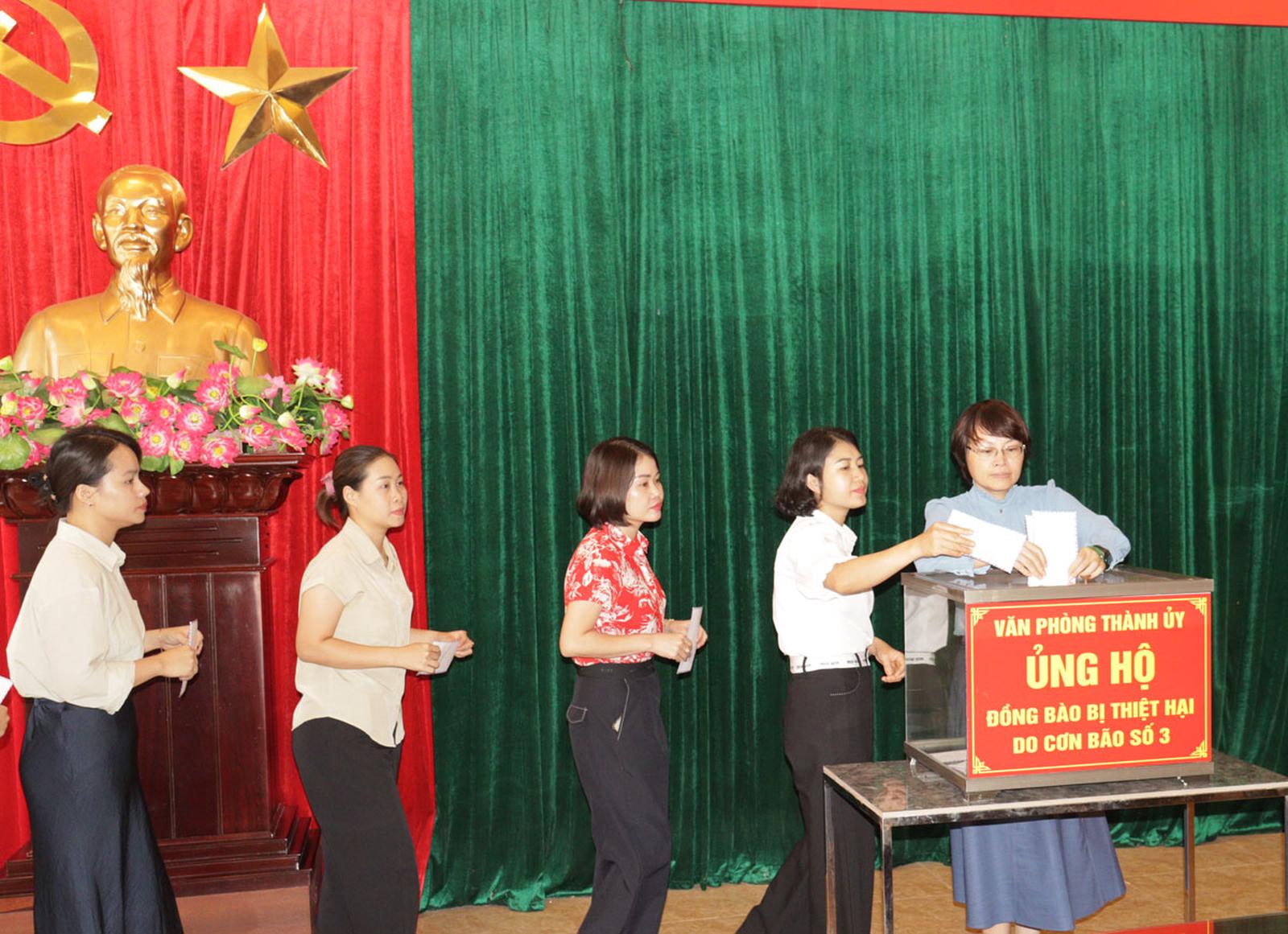 Để phần nào vơi bớt những khó khăn, kịp thời đóng góp một phần kinh phí, khắc phục hậu quả, ổn định cuộc sống, từng bước khôi phục lại đời sống, lãnh đạo Văn phòng Thành ủy kêu gọi cán bộ, công chức, người lao động phát huy truyền thống đoàn kết, với tinh thần "tương thân, tương ái", "lá lành đùm lá rách", tích cực đồng hành, tham gia đóng góp, chia sẻ bằng mọi hình thức để an ủi, động viên đối với đồng bào bị thiệt hại do bão số 3 gây ra.