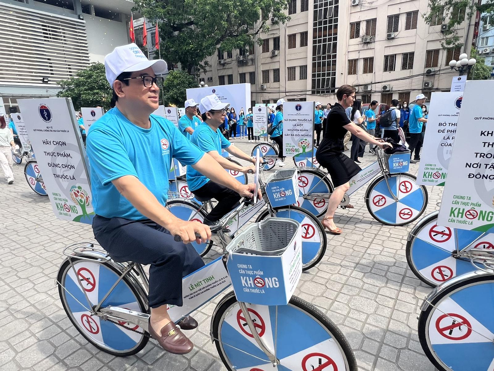Ông Lương Ngọc Khuê, Cục trưởng Cục Quản lý Khám chữa bệnh, Giám đốc Quỹ Phòng, chống tác hại của thuốc lá cùng các đại biểu tham dự diễu hành mít tinh tuyên truyền phòng, chống tác hại của thuốc lá