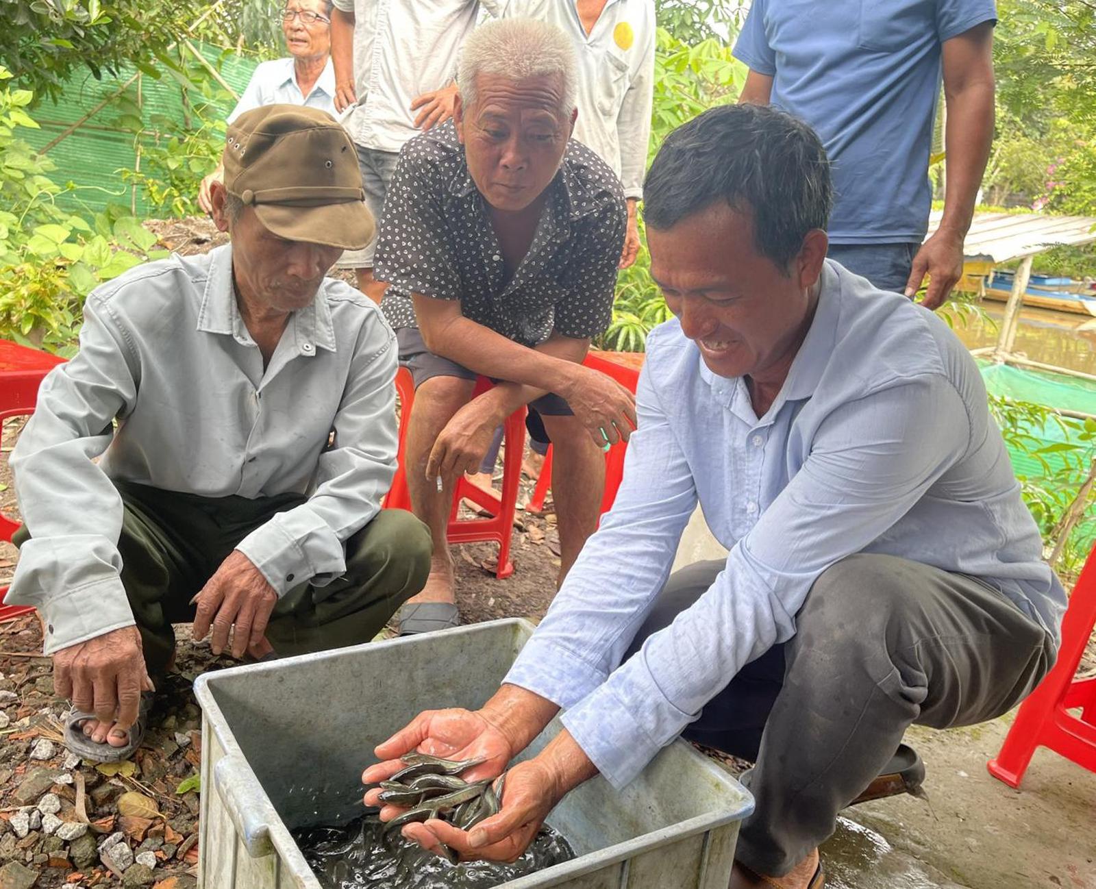 Hộ dân nhận con giống được hỗ trợ từ Dự án đa dạng hóa sinh kế, phát triển mô hình giảm nghèo (Ảnh: Thành Công).
