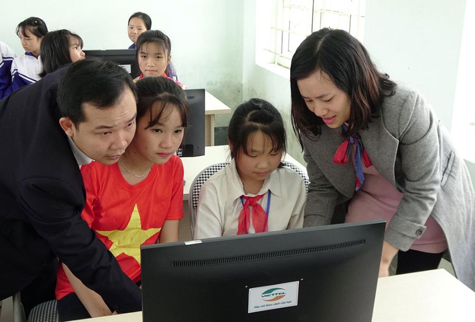 Tập đoàn Công nghiệp - Viễn thông Quân đội bàn giao 3 phòng máy tính và trang thiết bị cho các điểm trường ở huyện Bá Thước, Thanh Hóa