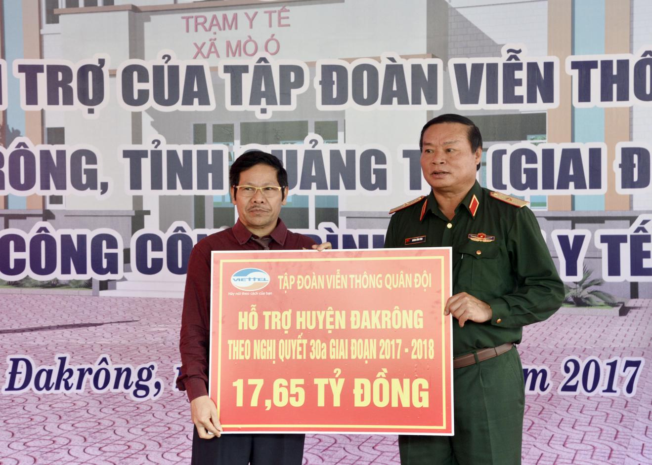 Trong lễ khởi công, Viettel cũng công bố kế hoạch tài trợ cho huyện Đăkrông giai đoạn 2017-2018. Theo đó, Viettel cam kết cùng phối hợp với chính quyền, nhân dân thực hiện hỗ trợ huyện Đakrông theo Nghị quyết 30a để thực hiện giảm nghèo nhanh và bền vững, với tổng kinh phí 17,65 tỷ đồng. Các nội dung Viettel thực hiện gồm: Hỗ trợ trực tiếp để nhân dân phát triển sản xuất và chăn nuôi; Hỗ trợ phát triển về lĩnh vực y tế và giáo dục; Hỗ trợ phát triển cơ sở hạ tầng và cung cấp giải pháp VT-CNTT.