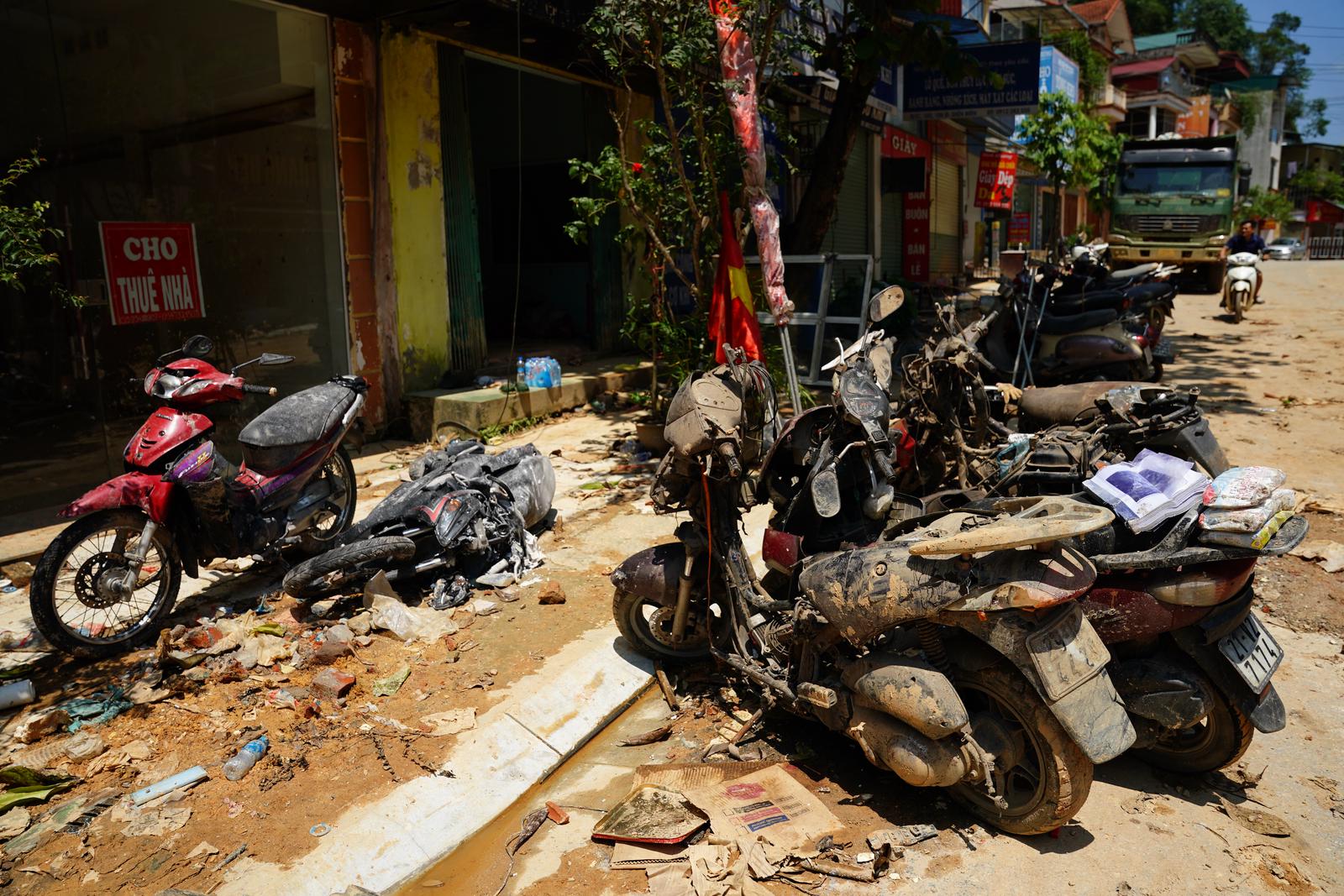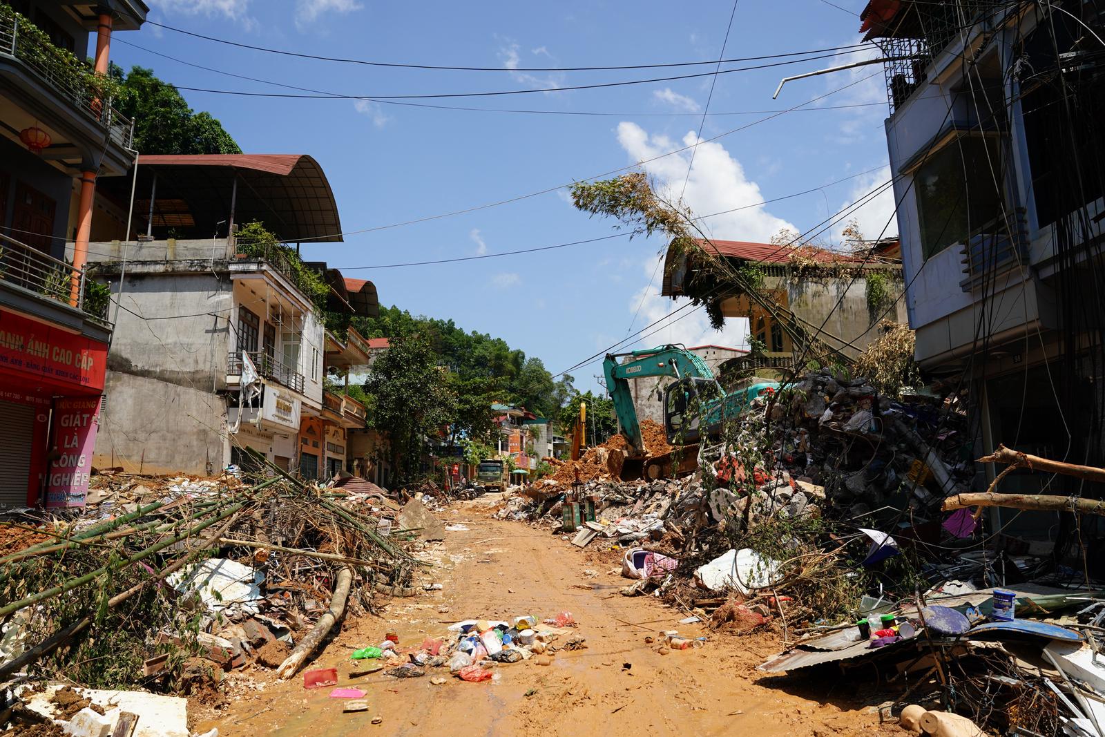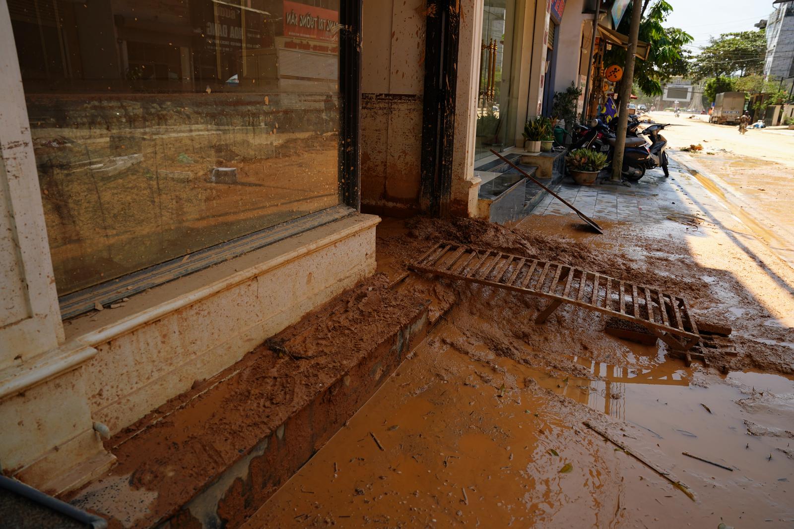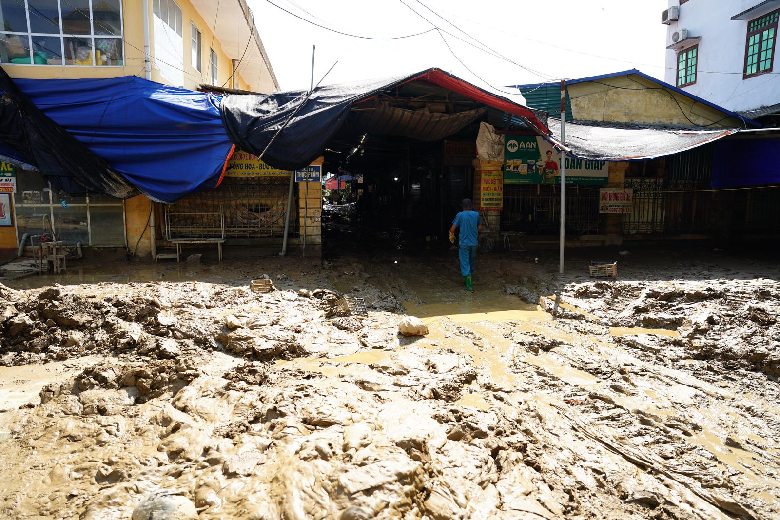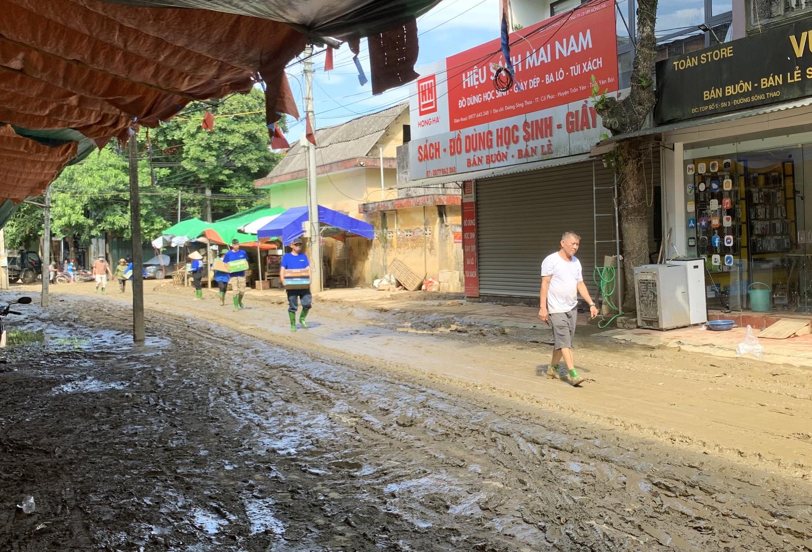 Khu vực chợ trung tâm huyện Trấn Yên (tỉnh Yên Bái) bị nước ngập lên đến gần 2m, rác bùn lên đến hơn 1m. “Ngày nào cũng phải có đến vài trăm người dọn dẹp, cào quét, kéo bùn ra. Làm liên tục 6-7 ngày, đường mới được như thế này, có nơi bùn vẫn ngập cao đến 20-30cm”, bà Nguyễn Thị Loan (ngụ đường Sông Thao, huyện Trấn Yên) chỉ con đường quanh chợ và nói. Bà Loan kể thêm: “Cả đời tôi, chưa bao giờ thấy lũ lớn, ngập sâu như đợt này. Gần sông, ở phía trong có 2 nhà chỉ có cụ già hơn 70 tuổi và hơn 80 tuổi ở một mình, hôm nhà ngập cao lên tầng 2, ở trong không ra được, vẫy tay gọi mọi người đến cứu”.