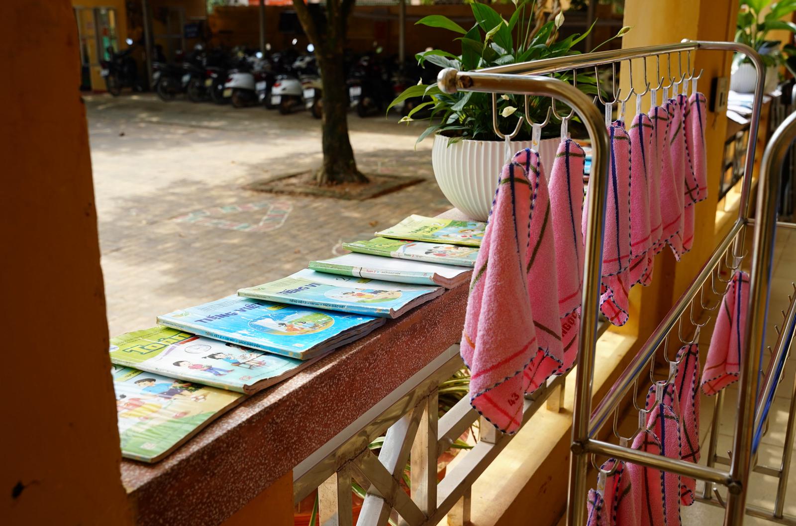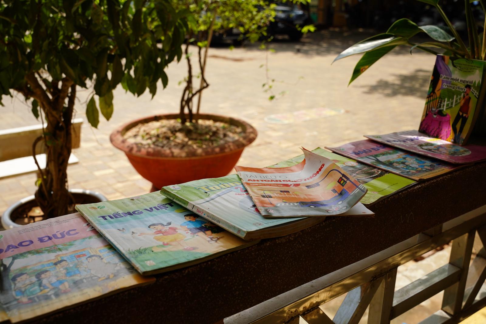 Sách vở và đồ dùng của học sinh bị ngâm trong nước lũ, được phơi nắng trong sân trường những ngày qua sau khi nước rút. Cô Đỗ Thị Diễm Hương (giáo viên Trường Tiểu học Kim Đồng) cho biết: “Trường Tiểu học Kim Đồng bị thiệt hại khá nặng nề sau trận bão lũ. Trường có gần 1.000 học sinh thì hơn 50% học sinh gia đình bị thiệt hại, mất hoàn toàn tài sản do nước lũ cuốn trôi, hư hỏng. Tất cả đồ dùng dạy học, trang thiết bị trong trường cũng đã bị hư hỏng, không thể sử dụng”.