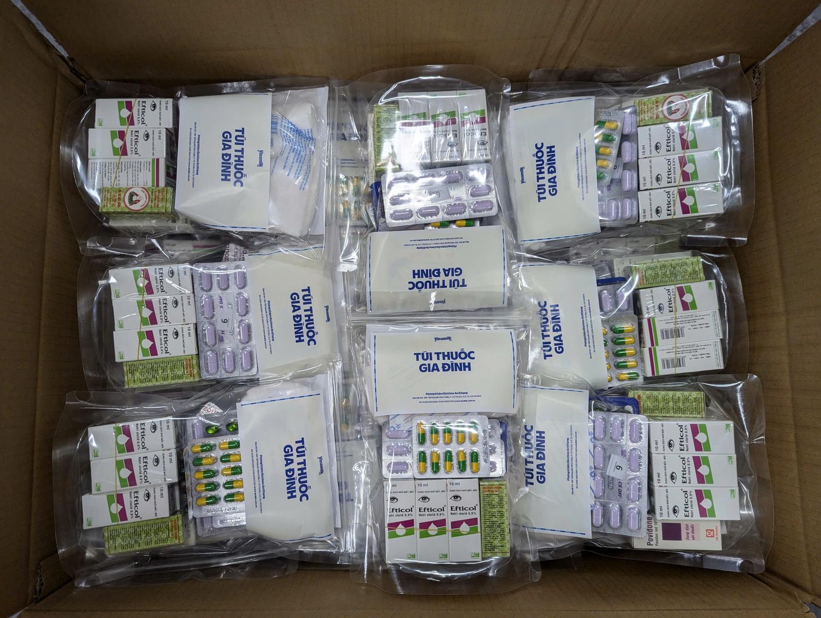 Ngoài ra, các y bác sĩ, dược sĩ của Phòng khám đa khoa An Khang (Vinamilk) tại TP.HCM cũng đã cùng nhau chuẩn bị 600 túi thuốc gia đình để gửi đến bà con các tỉnh miền Bắc như Hà Giang, Tuyên Quang... Túi thuốc gồm các loại thuốc cơ bản cần thiết, được kèm theo tờ hướng dẫn cụ thể, rõ ràng để người dân sử dụng.