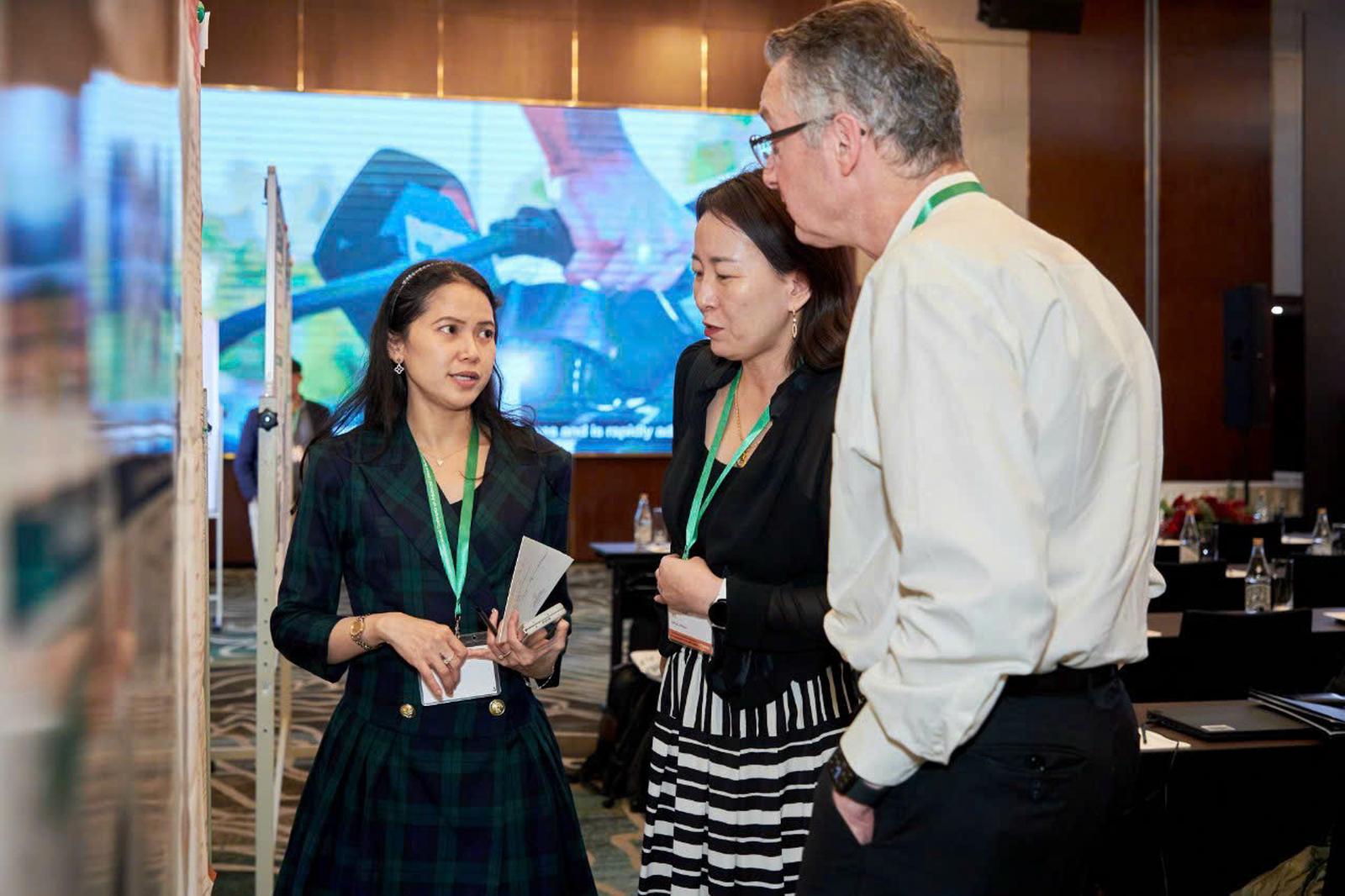 PGS. Lê Mỹ Loan Phụng (bìa trái) đang trao đổi với các nhà khoa học tại Hội nghị quốc tế lần thứ 14 “Advanced Lithium Batteries for Automobile Applications”, tháng 11/2023. (Ảnh: NVCC)