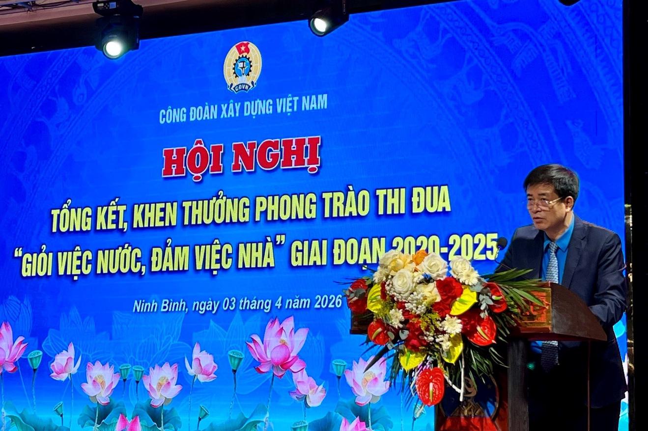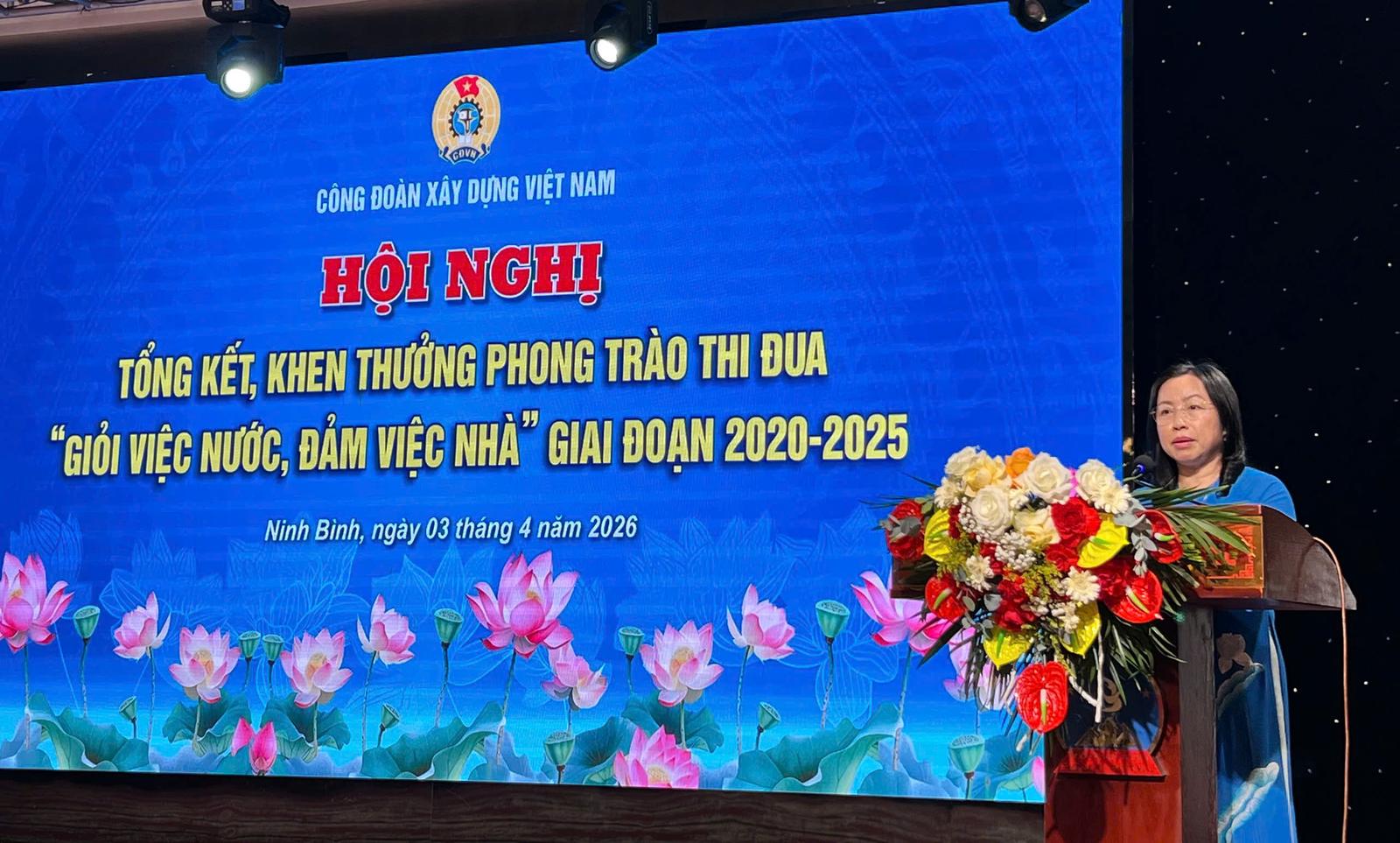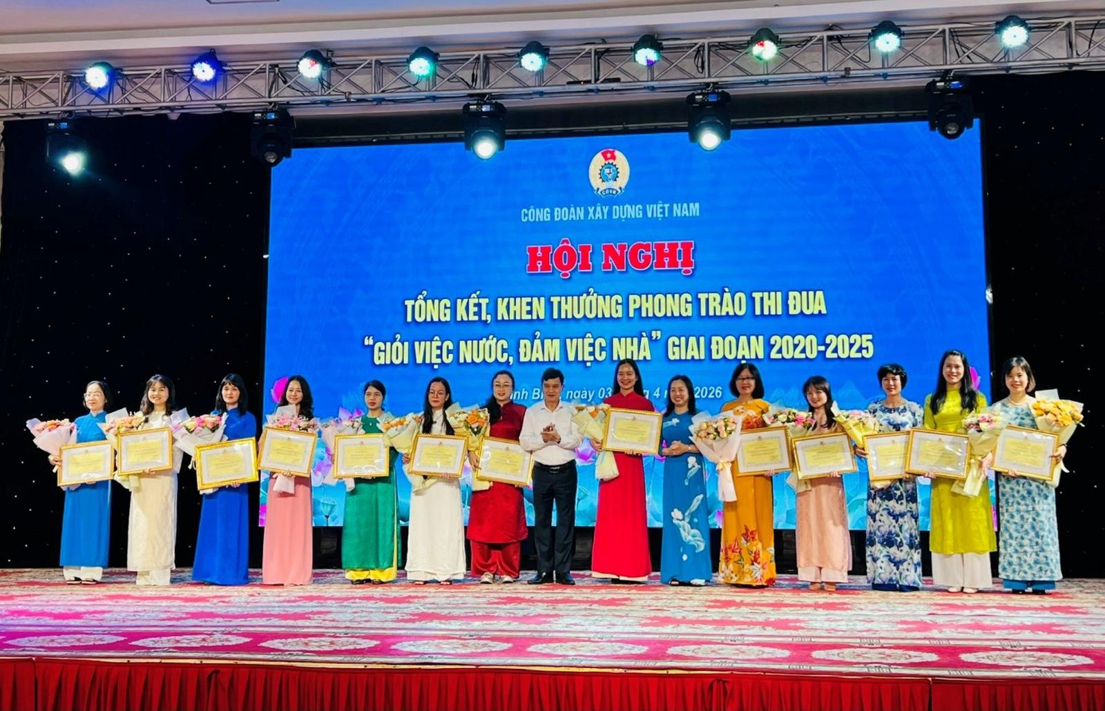 (Thanh tra) - Ngày 3/4, Công đoàn Xây dựng Việt Nam tổng kết phong trào “Giỏi việc nước, đảm việc nhà” giai đoạn 2020–2025, tuyên dương 86 tập thể, cá nhân nữ tiêu biểu.