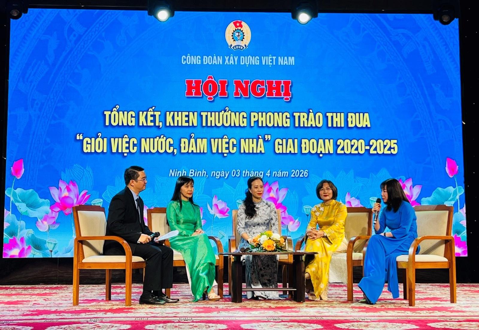 Tại hội nghị, nhiều câu chuyện xúc động về những nữ kỹ sư, công nhân vượt qua “áp lực kép” đã được chia sẻ. Họ không chỉ hoàn thành tốt nhiệm vụ chuyên môn tại các công trình kéo dài, mà còn chu toàn trách nhiệm gia đình, nuôi dạy con cái, giữ gìn tổ ấm. Chính những nỗ lực thầm lặng ấy đã góp phần làm nên hình ảnh “bông hồng thép” của ngành Xây dựng.