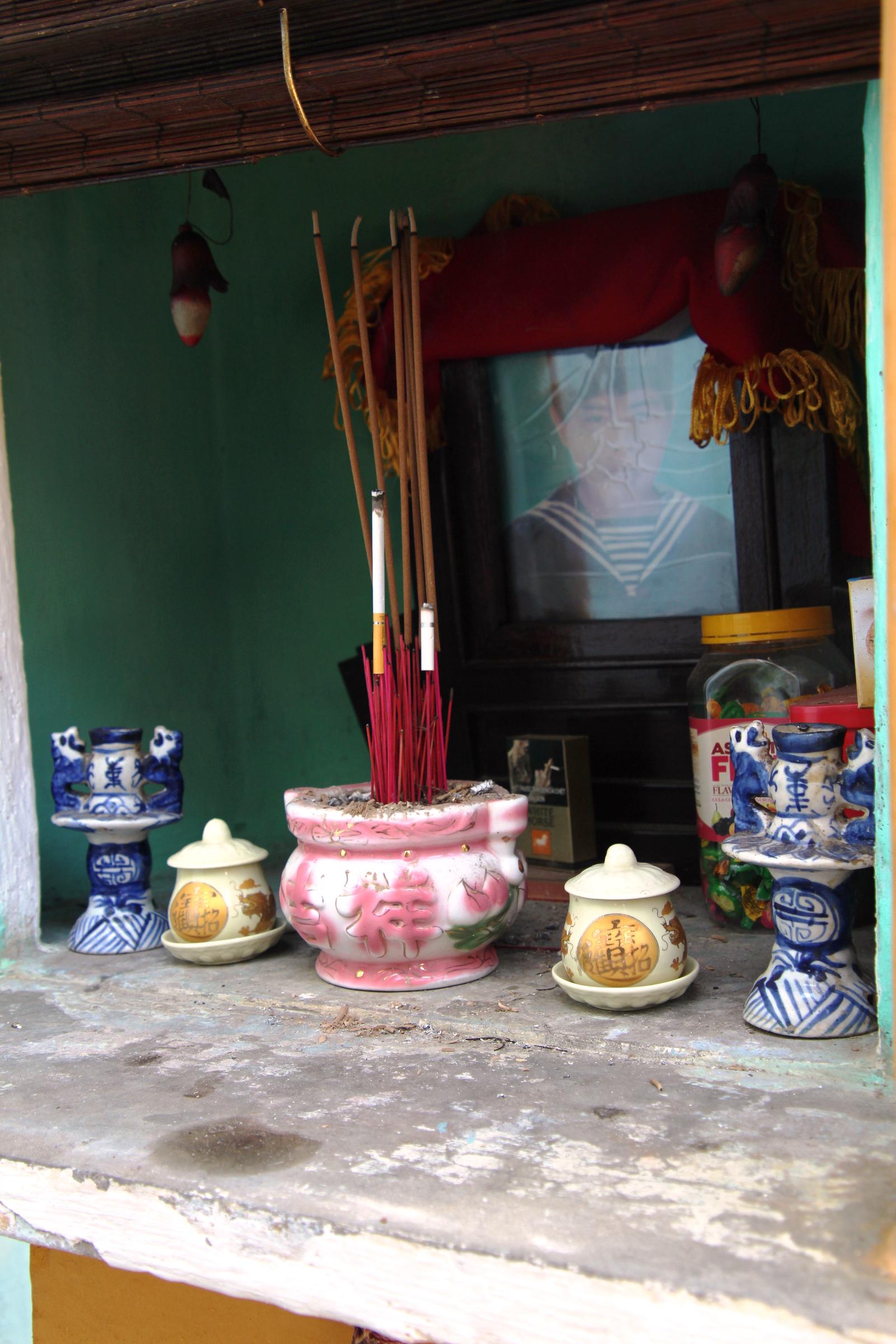 Mẹ Kế dẫn tôi ra bàn thờ anh Đoàn phía ngoài sân. Gọi là bàn thờ, nhưng thực ra đó là một cái trụ nhỏ, trên đó xây một ô kiểu mái nhà. Cạnh đó là gốc cây me cằn cỗi. Mẹ Kế cho hay, mẹ là vợ hai của bố anh Đoàn. Do vậy, khi anh Đoàn hi sinh, những người con của bà vợ cả không cho mẹ Kế đem di ảnh con trai mình vào nhà thờ tự, mà bắt thờ ở ngoài trời. Đêm đêm mẹ vẫn đứng trước di ảnh con gọi thầm: “Đoàn ơi con ở đâu sao mãi không về”. Căn nhà mẹ Kế bây giờ đang ở nằm trong hẻm sâu xuống cấp nhiều năm nay. Nền gạch cũ lâu ngày xỉn đen, phía trong là lu nước nhỏ, một bộ bàn ghế kê góc nhà sờn cũ. Ngày ngày mẹ Kế tự nấu ăn, đi chợ, tự nghỉ ngơi.