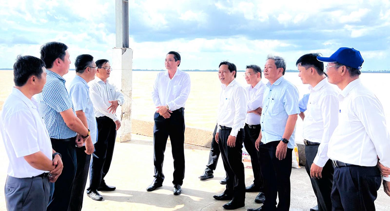 Đoàn công tác đến kiểm tra thực tế tại Cảng cá Bình Đại. Ảnh: ĐT