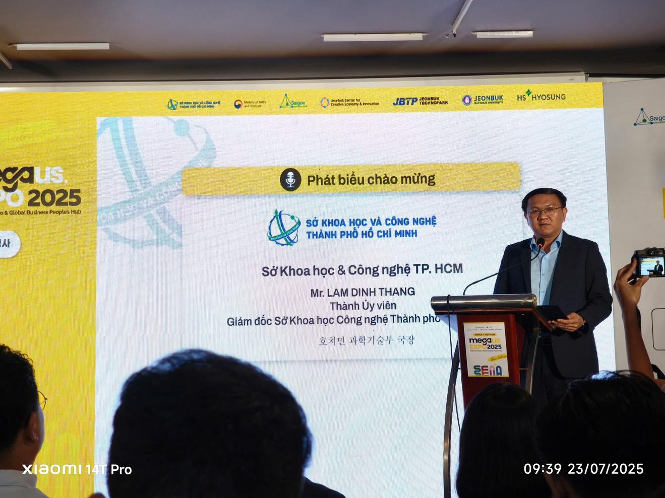 Phát biểu tại buổi lễ, ông Lâm Đình Thắng, Giám đốc Sở Khoa học và Công nghệ TP Hồ Chí Minh, nhấn mạnh MEGA US EXPO 2025 là hoạt động quan trọng thúc đẩy đổi mới sáng tạo và khởi nghiệp giữa hai quốc gia.