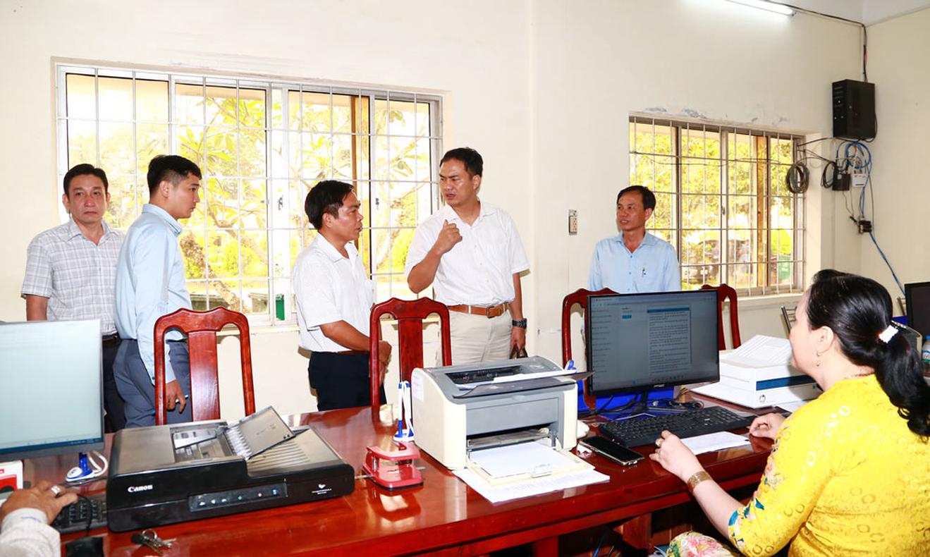 Đảng ủy xã Càng Long đã báo cáo công tác triển khai chính quyền địa phương 2 cấp trên nền tảng số; kiểm tra hệ thống điều hành tác nghiệp và quản lý văn bản điện tử không mật; hạ tầng kết nối hệ thống và hệ thống mật... tại xã.