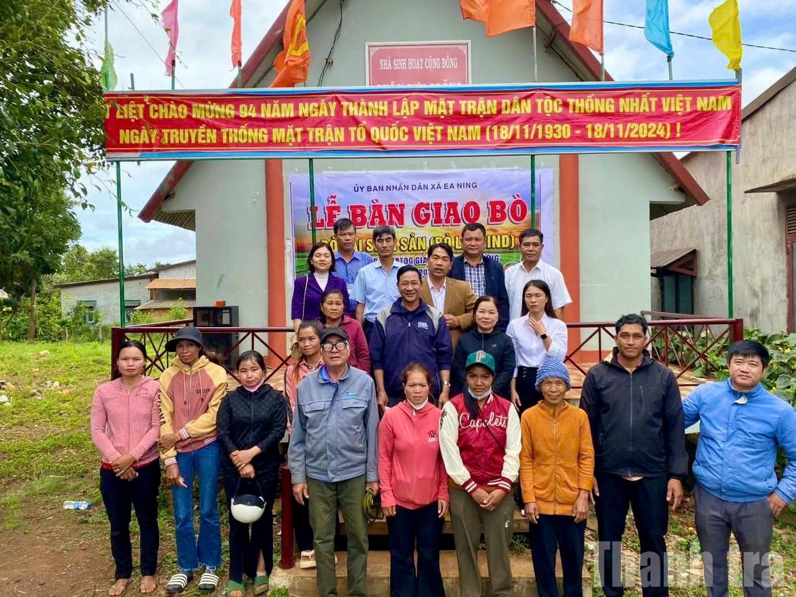 UBND xã Ea Ning (Đắk Lắk) tổ chức bàn giao bò sinh sản cho hộ nghèo, hộ cận nghèo, góp phần tạo sinh kế, giúp người dân từng bước ổn định cuộc sống và vươn lên thoát nghèo. Ảnh: NG