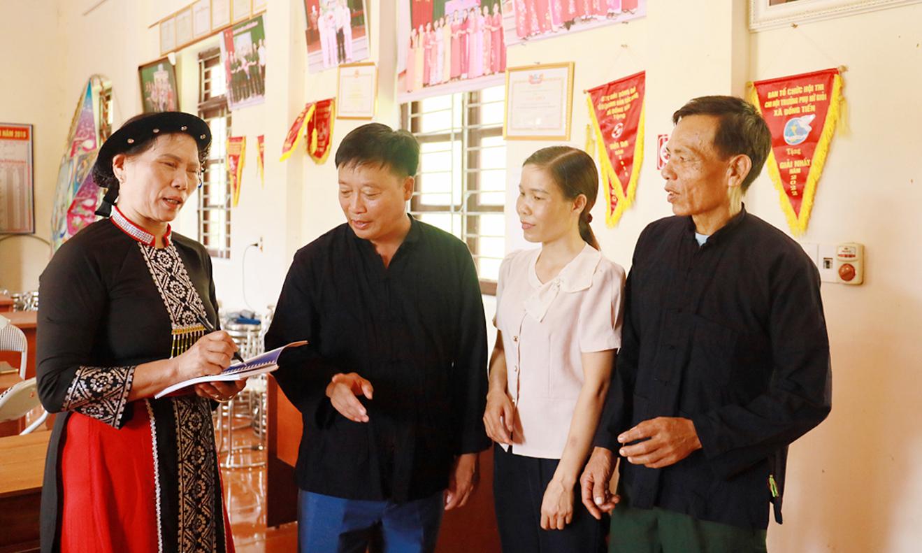 Cán bộ phụ nữ xã Đồng Tiến (Yên Thế) vận động người có uy tín trên địa bàn tham gia mô hình "Địa chỉ tin cậy". Ảnh: BBG