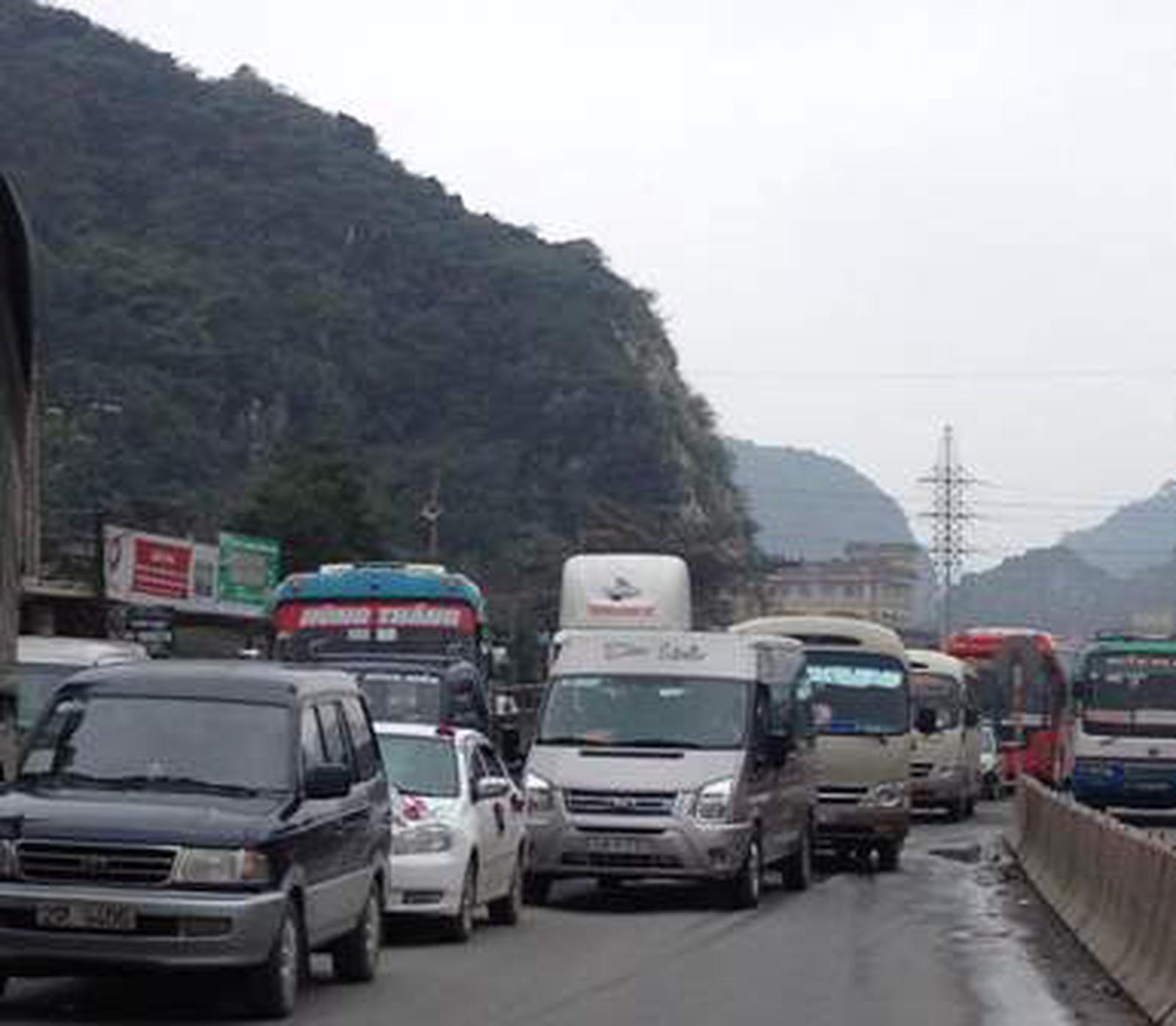Giao thông trên quốc lộ 1A, đoạn qua phường Nam Sơn, thị xã Tam Điệp bị ách tắc kéo dài. Ảnh: Nguyễn Trường