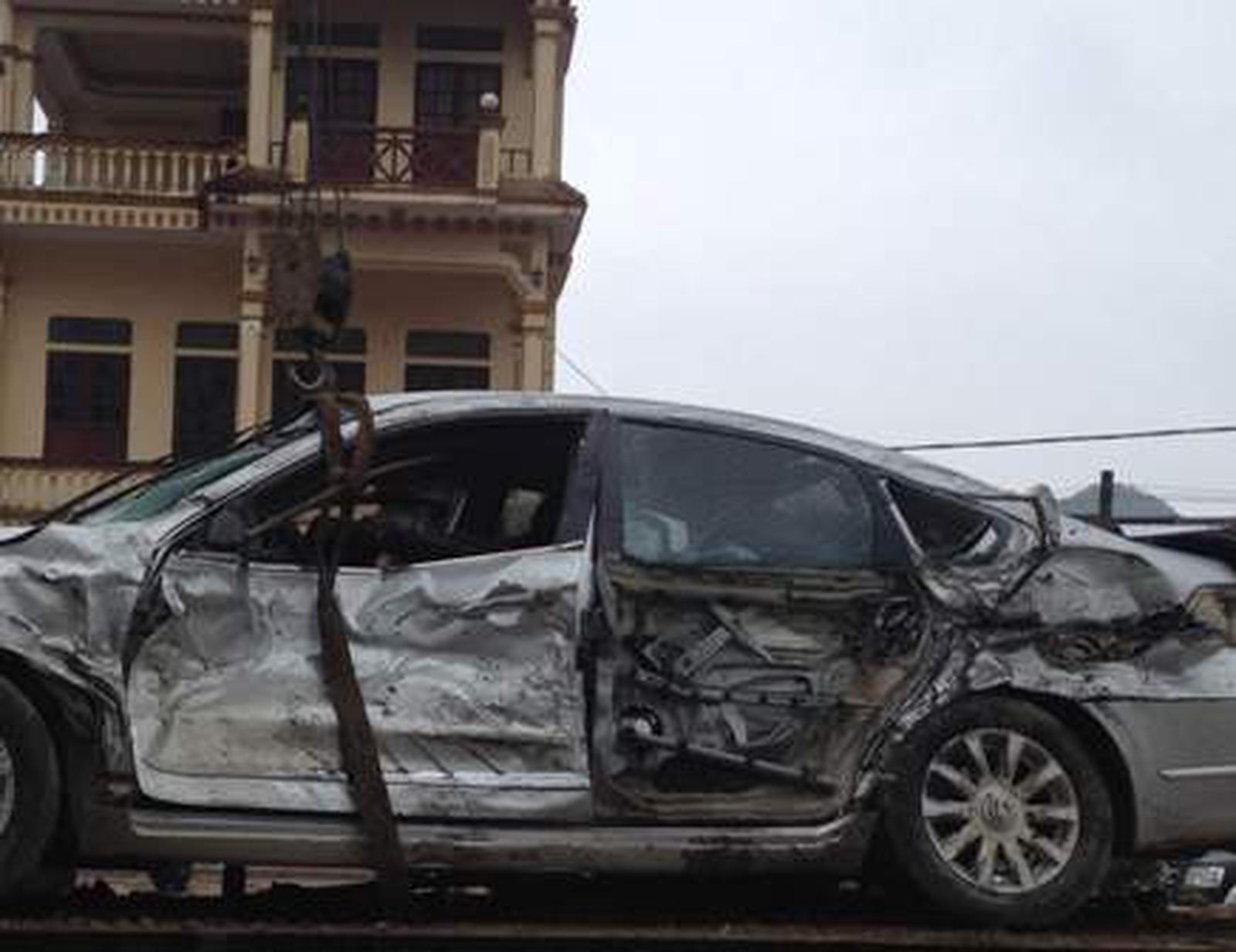 Vụ va chạm mạnh khiến xe con bẹp dúm. Ảnh: Nguyễn Trường