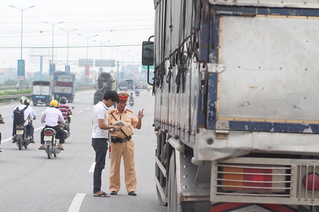 CSGT Hà Nội kiểm tra một xe tải có dấu hiệu vi phạm tải trọng. Ảnh: O.H