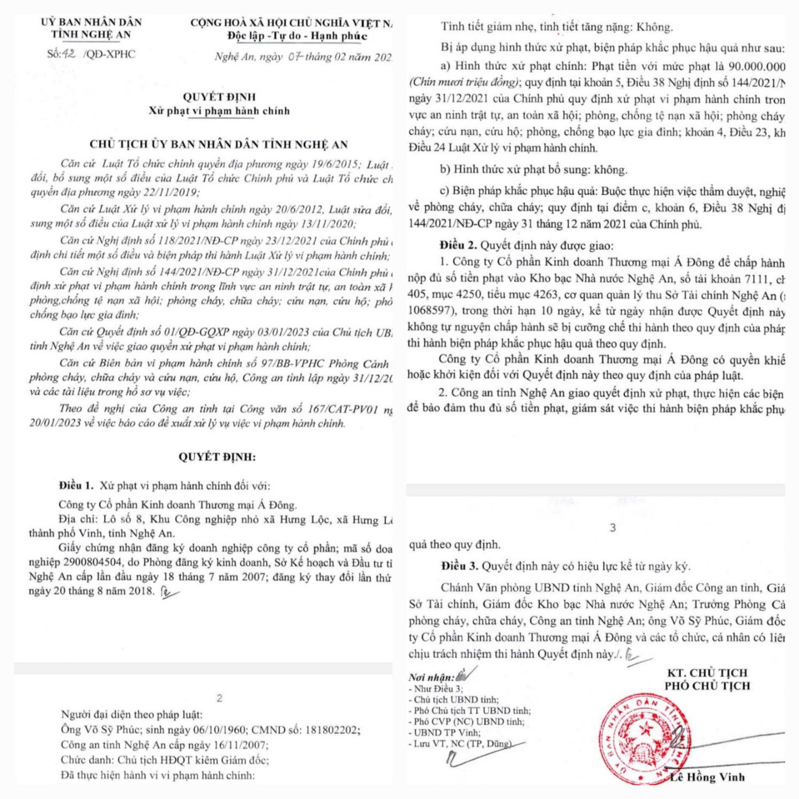 Các quyết định xử phạt vi phạm hành chính do UBND tỉnh Nghệ An. Ảnh: XT