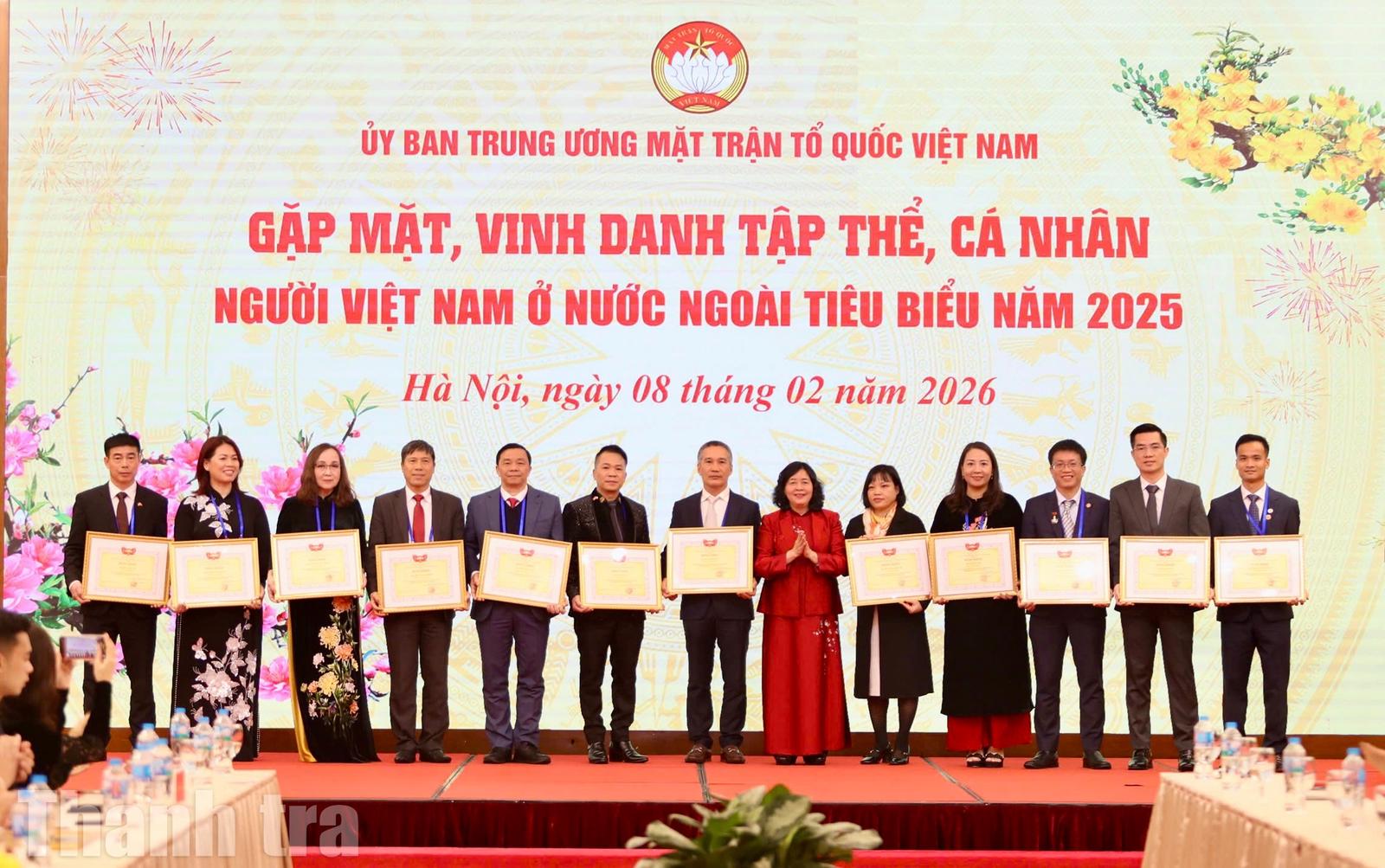 (Thanh tra) - Sáng ngày 8/2, Ủy ban Trung ương (UBTƯ) Mặt trận Tổ quốc (MTTQ) Việt Nam đã long trọng tổ chức Buổi gặp mặt, vinh danh các tập thể, cá nhân kiều bào tiêu biểu năm 2025 trong khuôn khổ Chương trình “Xuân Quê hương 2026”.