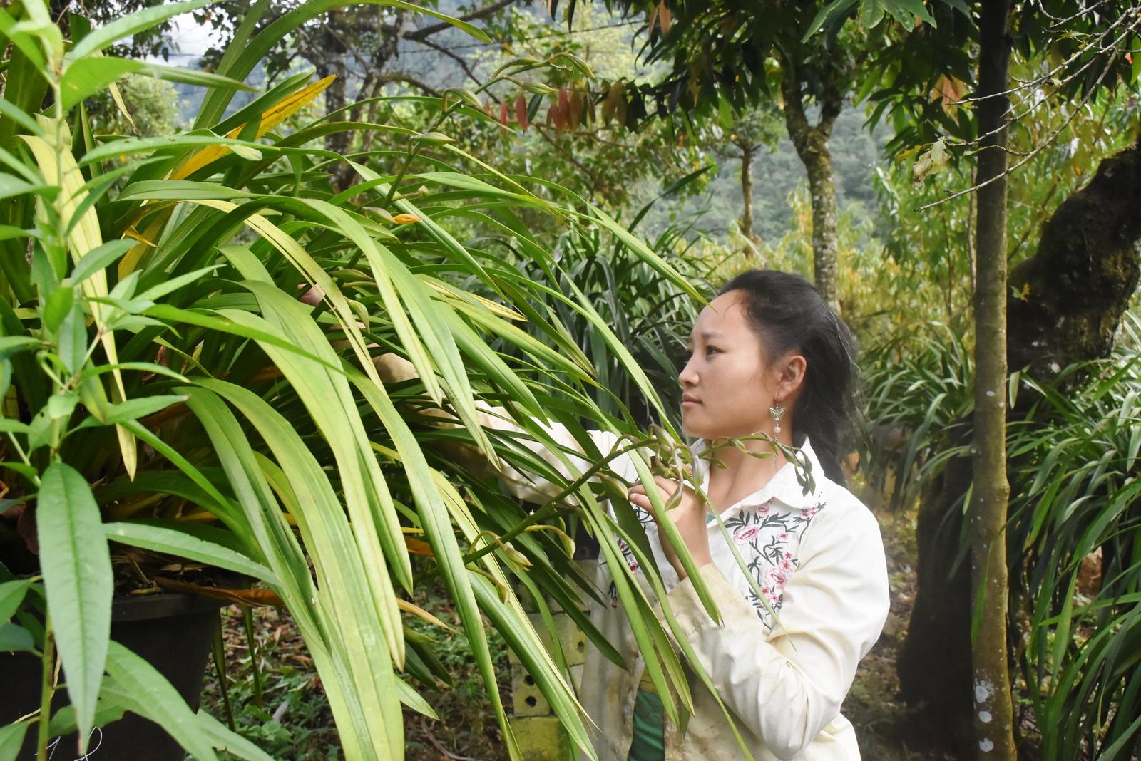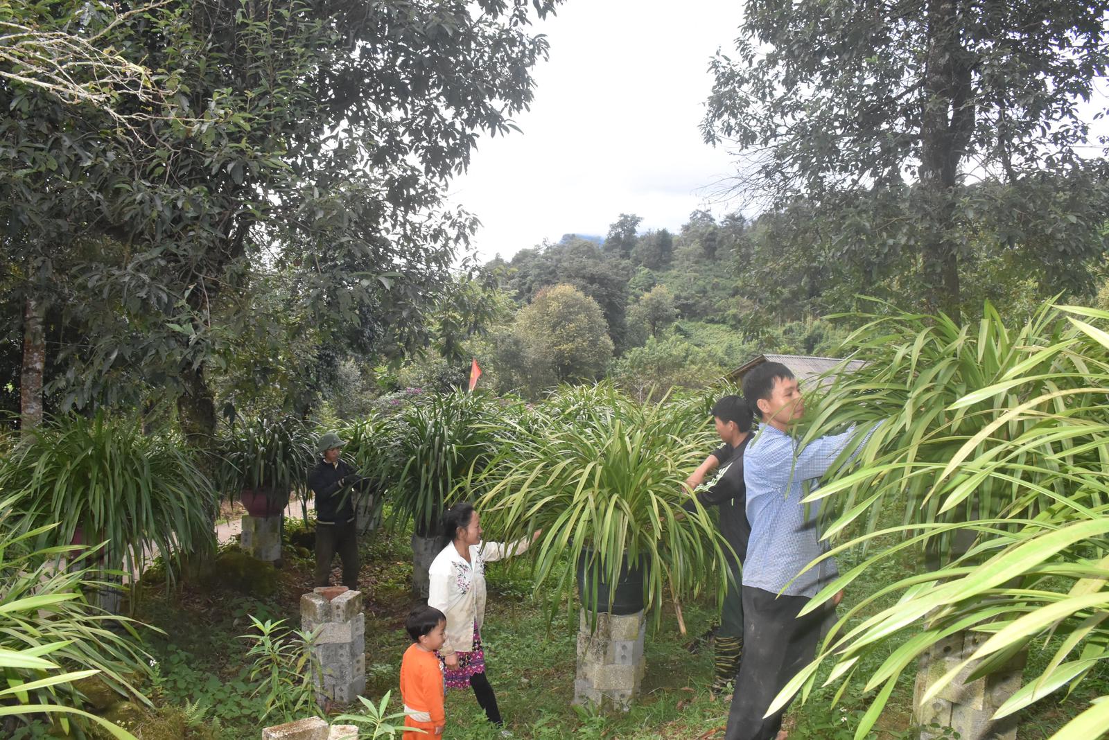 Người dân bản phát triển kinh tế gia đình qua việc trồng lan. Ảnh: Nguyễn Điểm