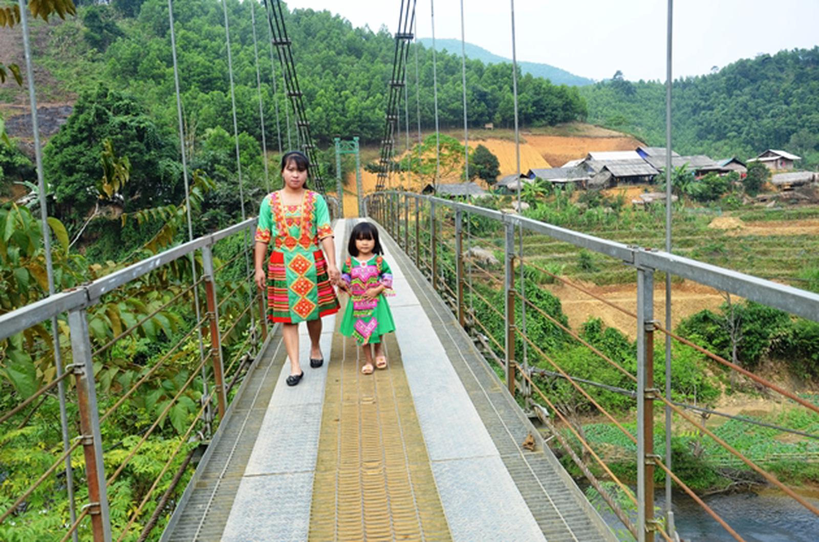 Người Mông, thôn Vàng On, xã Trung Minh được Nhà nước đầu tư cầu vào thôn. Ảnh: L.Q