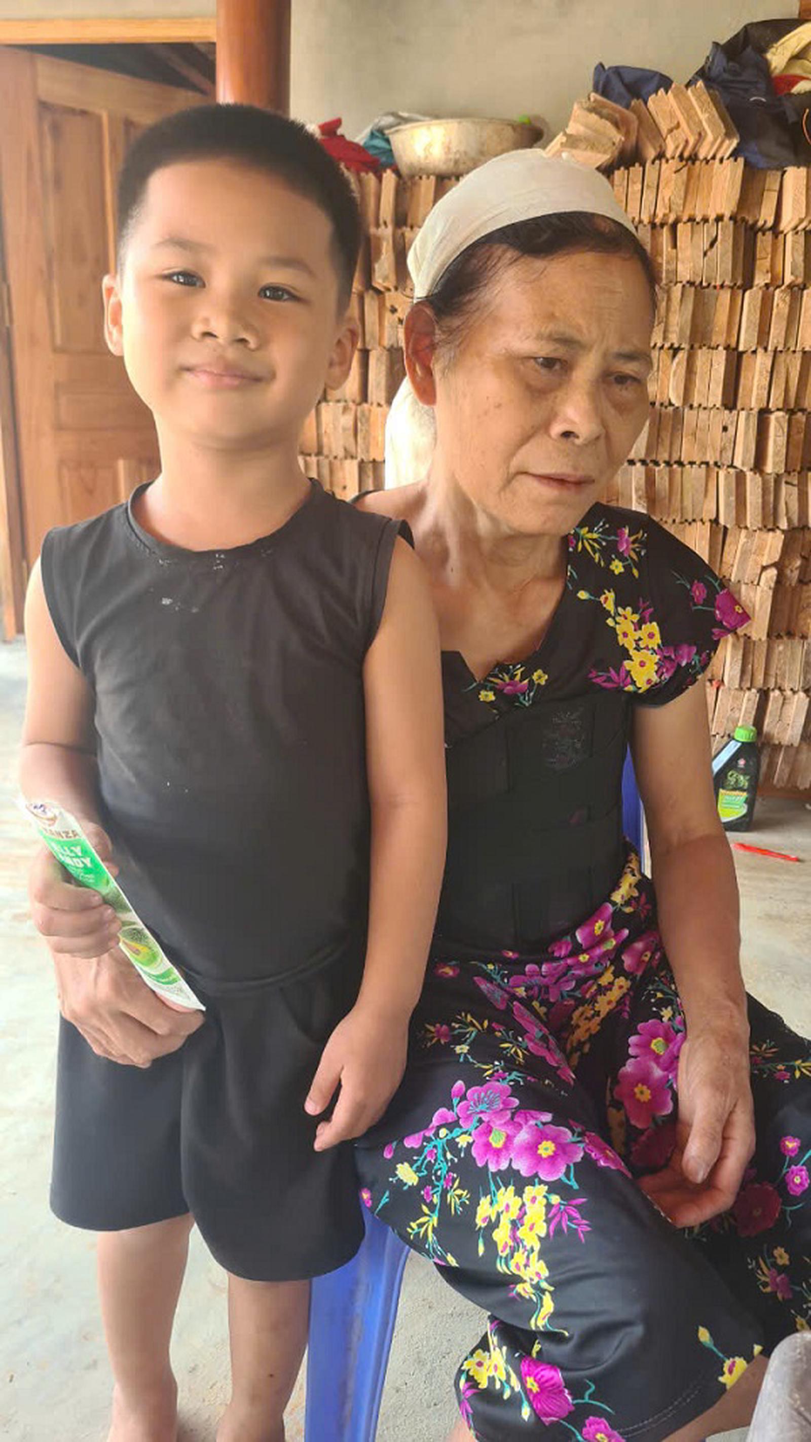 Bà Hoàng Thị Thắng và cháu nội Hoàng Văn Liệu (con trai anh Hoàng Văn D. mất tích). Ảnh: Bùi Bình