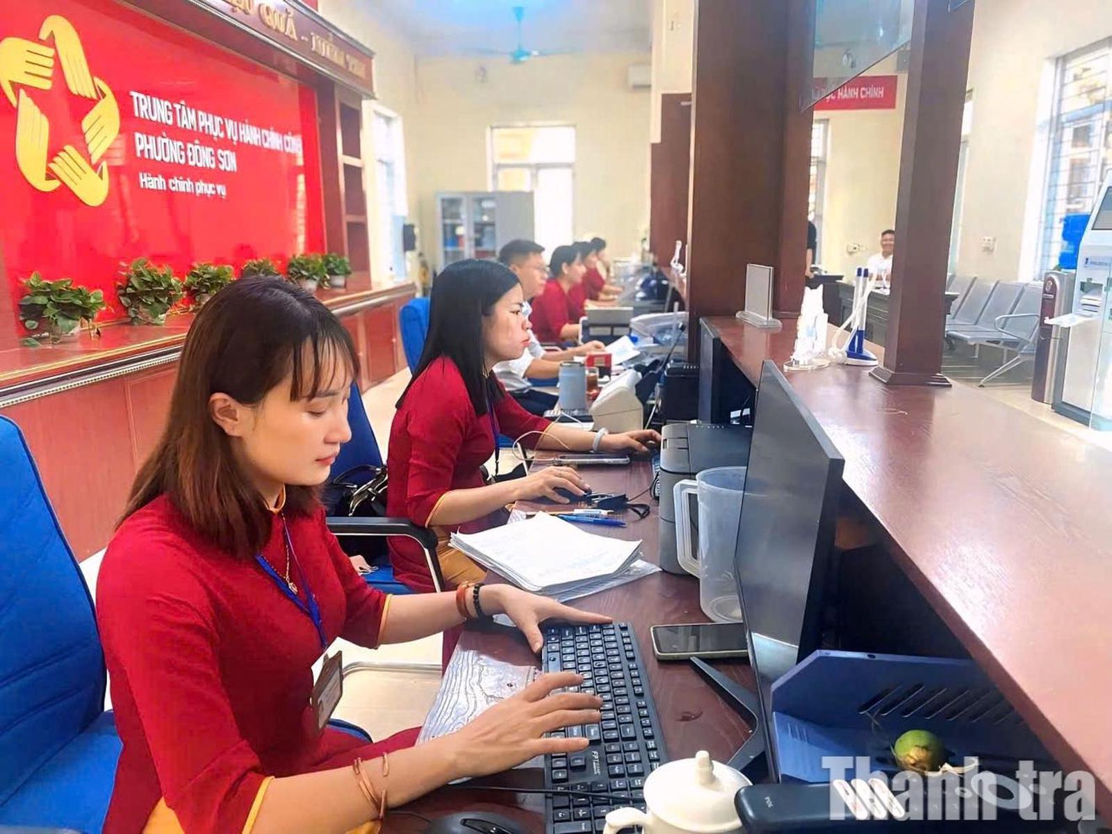 Trung tâm Phục vụ hành chính công phường Đông Sơn phục vụ Nhân dân trong giờ hành chính. Ảnh: Văn Thanh