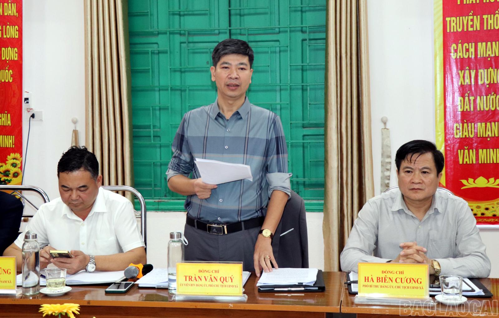 Lãnh đạo xã Cát Thịnh báo cáo kết quả thực hiện chính sách pháp luật trong công tác bình đẳng giới trên địa bàn xã. Ảnh: Báo Lào Cai