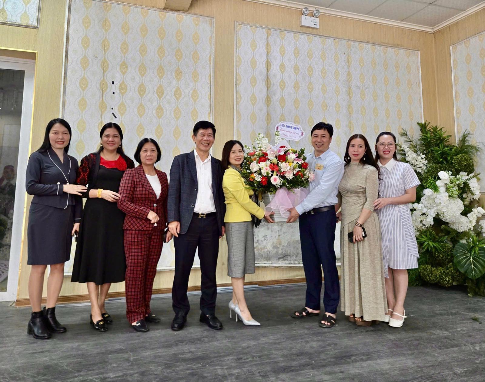 Lãnh đạo nhà trường tặng hoa chúc mừng nhân Ngày Quốc tế phụ nữ 8/3. Ảnh: TH