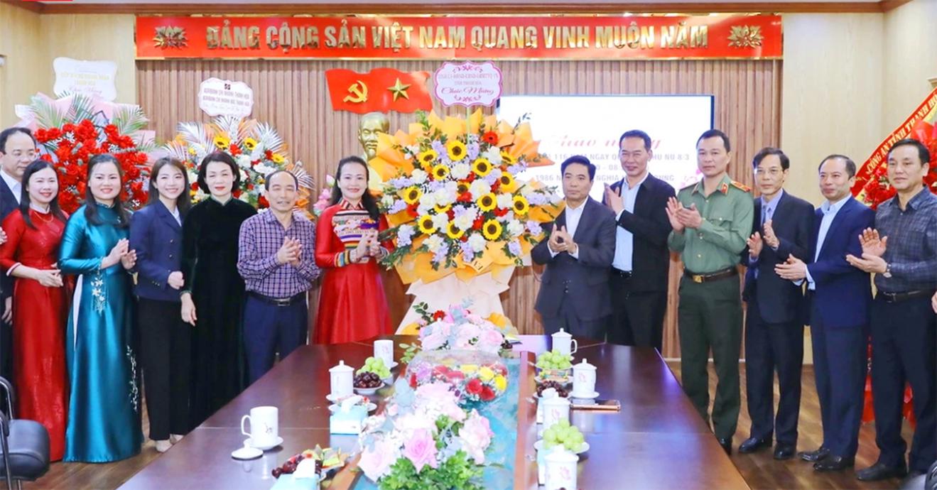 Bí thư Tỉnh ủy Thanh Hoá Nguyễn Doãn Anh cùng các lãnh đạo tỉnh tặng hoa chúc mừng Hội LHPN tỉnh nhân ngày Quốc tế phụ nữ 8/3. Ảnh: Đình Hợp