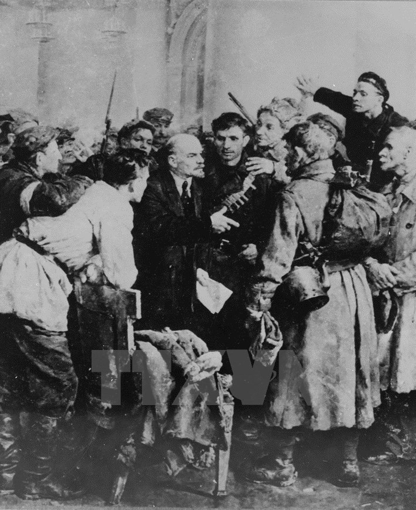 Rạng sáng 7/11/1917, quân khởi nghĩa tấn công vào Cung điện Mùa Đông ở Petrograd, mở đầu cuộc Cách mạng Tháng Mười Nga. (Ảnh: Tư liệu TTXVN)